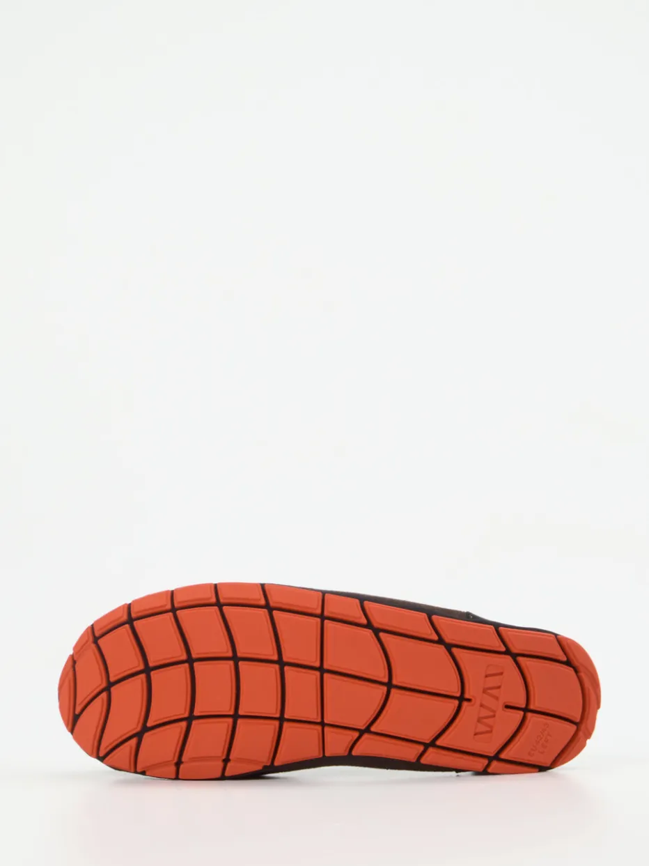 Die Marke Wai präsentiert mit diesem Slipper ein stilvoll-lässiges Alltagsmodell. Ideal für entspannte Stunden zu Hause oder für urbane Alltagsmomente bietet der Loafer eine Kombination aus schokobraunem, matt strukturiertem Synthetik und einem elastischen, neoprenähnlichen Fersenbereich. Die weiche, wärmespeichernde Textilfütterung mit Fellstruktur sorgt für angenehmen Tragekomfort – perfekt für kühlere Tage. Die orangefarbene Gummisohle mit Profil und hohem Flexanteil verleiht Trittsicherheit und einen modernen Streetwear-Charakter. Sichtnähte am Spann und die schlank-abgerundete Silhouette unterstreichen den puristischen Look. Ein progressives Freizeitmodell mit Wohlfühltechnik für designaffine Komfortliebhaber.