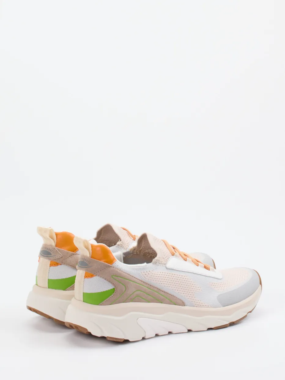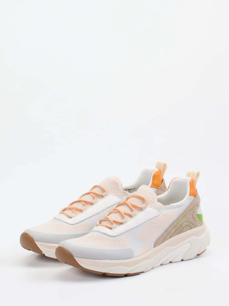 Farbenfroher Leichttritt für jeden Tag.Gabor Comfort präsentiert diesen modischen Damen-Slipper in sportiver Streetwear-Anmutung. Ob auf dem Weg ins Café oder beim ausgedehnten Stadtspaziergang – dieser Schuh überzeugt mit atmungsaktivem Textilmaterial, kombiniert mit Veloursleder-Optik und matten Mesh-Elementen. Das Farbspiel in Apricot-Beige, Lindgrün, Weiß und Orange setzt frische Akzente, während die voluminöse Silhouette den trendstarken Chunky Look aufgreift. Die flexible Gummisohle mit Rollingsoft-Technologie bietet angenehme Dämpfung und unterstützt eine geführte Abrollbewegung. Dank Elastschnürung entsteht ein komfortabler Slip-in-Effekt. Gabor Comfort steht für spürbare Leichtigkeit mit modischem Anspruch.