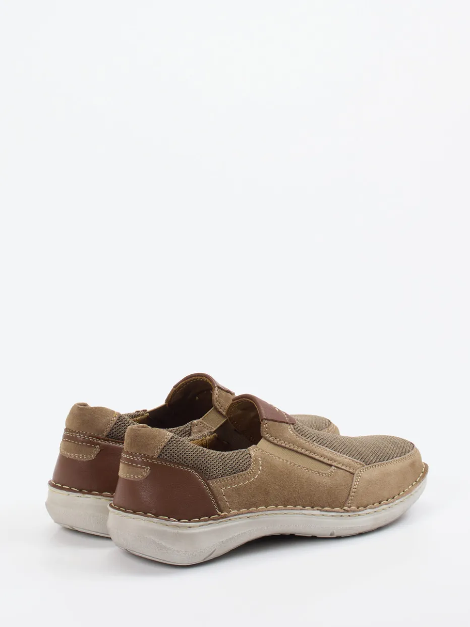 Unkompliziert durch den Tag.Josef Seibel präsentiert einen Herren-Slipper, der Alltagstauglichkeit mit stilvoller Leichtigkeit vereint. Für entspannte Wege zwischen Stadtbummel und Zuhause bietet der Komfort-Slipper ein smartes Zusammenspiel aus samtig angeschliffenem Veloursleder und atmungsaktivem Mesh. Die natürliche Sandbeige-Nuance mit braunen Akzenten wirkt dezent und lässt sich vielseitig kombinieren. Elastikeinsätze an den Seiten erleichtern den Einstieg, während die profilierte Gummisohle sicheren Halt verspricht. Die abgerundete Form und gepolsterte Fersenkappe unterstreichen den Tragekomfort. Dank seiner klaren Linien reflektiert das Modell den Trend „Quiet Comfort“. Ein bequemer Begleiter mit feinem Materialmix und funktionalem Designprofil von Josef Seibel.