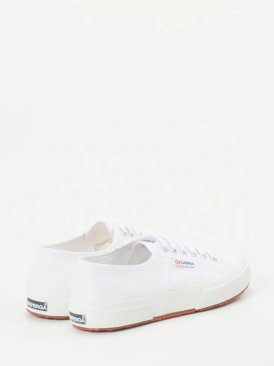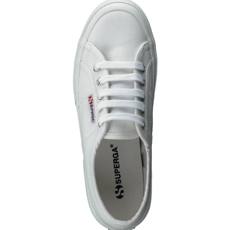 Clean White trifft Retro-Charme. Superga bringt mit diesem Unisex-Sneaker aus Textil ein minimalistisches Freizeitmodell für Alltag oder Urlaub. Ideal für legere City-Touren oder entspannte Sommertage überzeugt der klassisch flache Sneaker durch robustes Canvas mit matter Oberfläche. Die Farbgebung in Reinweiß wird ergänzt durch silberfarbene Metallösen und eine Label-Stickerei außen. Eine vulkanisierte Gummisohle mit strukturierter Lauffläche sorgt für angenehme Trittsicherheit. Die schlichte Schnürung sowie das Logo-Patch an der Ferse runden das retro-inspirierte Design ab. Kombiniert zu Shorts, Jeans oder luftigen Stoffhosen zeigt sich der Stil besonders vielseitig. Ein Sneaker mit klarer Formensprache und ikonischem Markenprofil.