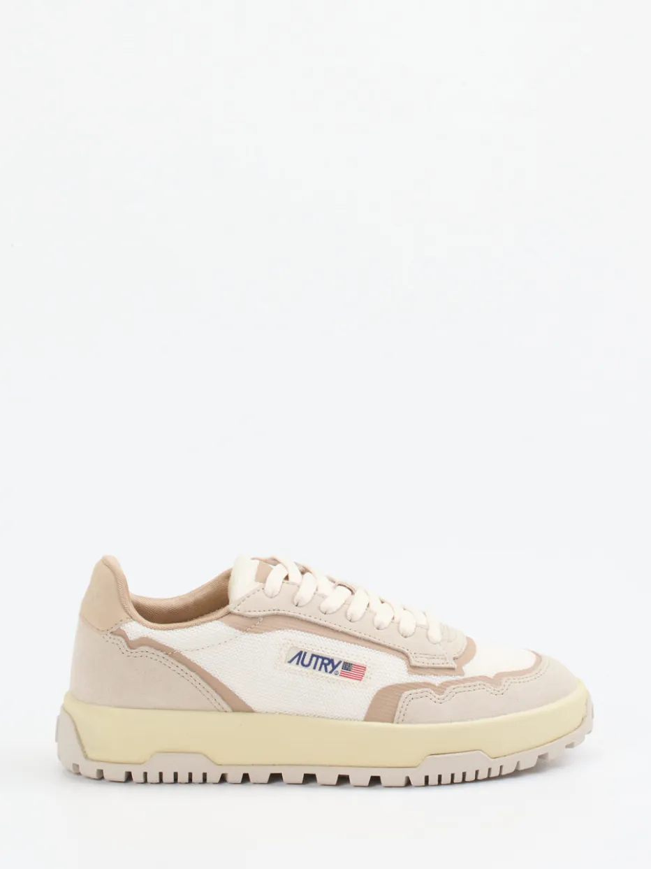 Autry kombiniert in diesem Sneaker sportives Streetwear-Design mit dezenter Eleganz. Für entspannte City-Tage oder den nächsten Urlaub: Das Modell vereint eine beige Farbpalette mit einer klassischen flachen Silhouette. Das Obermaterial aus wind- und wasserdichtem Gewebe nutzt canvasartige Flächen und Veloursleder-Overlays mit leicht genarbter Struktur. Eine robuste Gummiprofilsohle sorgt für Halt, Schnürung für Flexibilität. Die tonale Logo-Stickerei und Retro-Anklänge machen ihn trendstark in „Quiet Luxury“-Manier. Stilvoll zu naturfarbenen Accessoires oder minimalistischen Outfits. Der Sneaker überzeugt mit unaufgeregtem Stil und komfortorientierter Funktionalität.