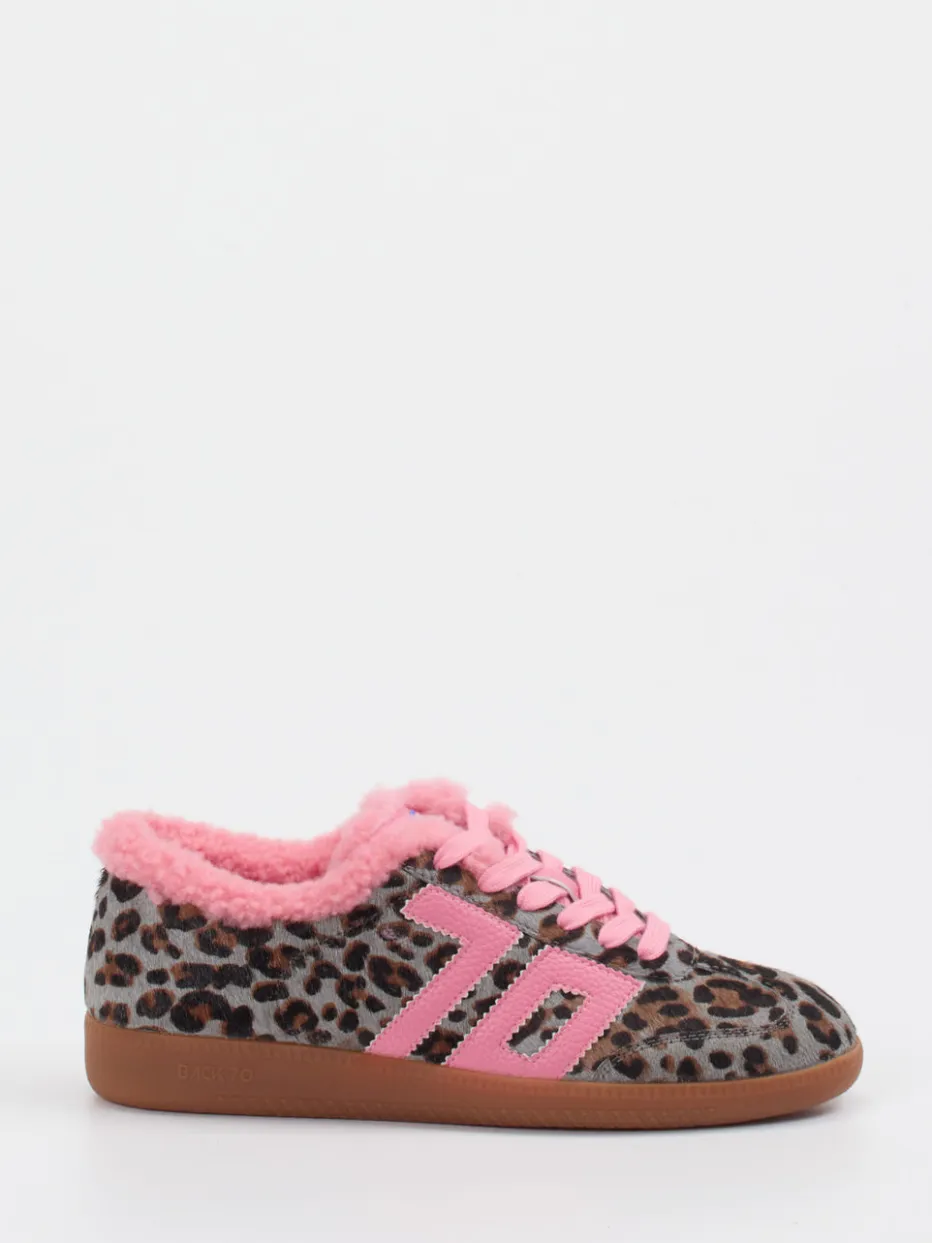 Flausch trifft Trendcouture.Back 70 liefert mit diesem Damen-Sneaker ein ausdrucksstarkes Statement für den Alltag. Ideal für entspannte Freizeitmomente oder stylische City-Walks: Das Modell kombiniert weiches Fell mit einer flauschigen Innenfütterung aus rosa Textilfasern. Der rosa Farbton wird durch einen kontrastierenden Leoprint in Braun und Grau sowie tonige Schnürsenkel akzentuiert. Die abgerundete Silhouette, eine profilierte Gummisohle und markante Logo-Details unterstreichen den urbanen Charakter. Inspiriert vom Y2K-Streetstyle-Trend, fällt dieser Sneaker durch Farbe und Struktur sofort ins Auge. Lässt sich hervorragend zu Pastell-Hoodies oder Teddy-Materialien kombinieren. Ein Eyecatcher mit Komfort-Faktor und modischer Substanz.