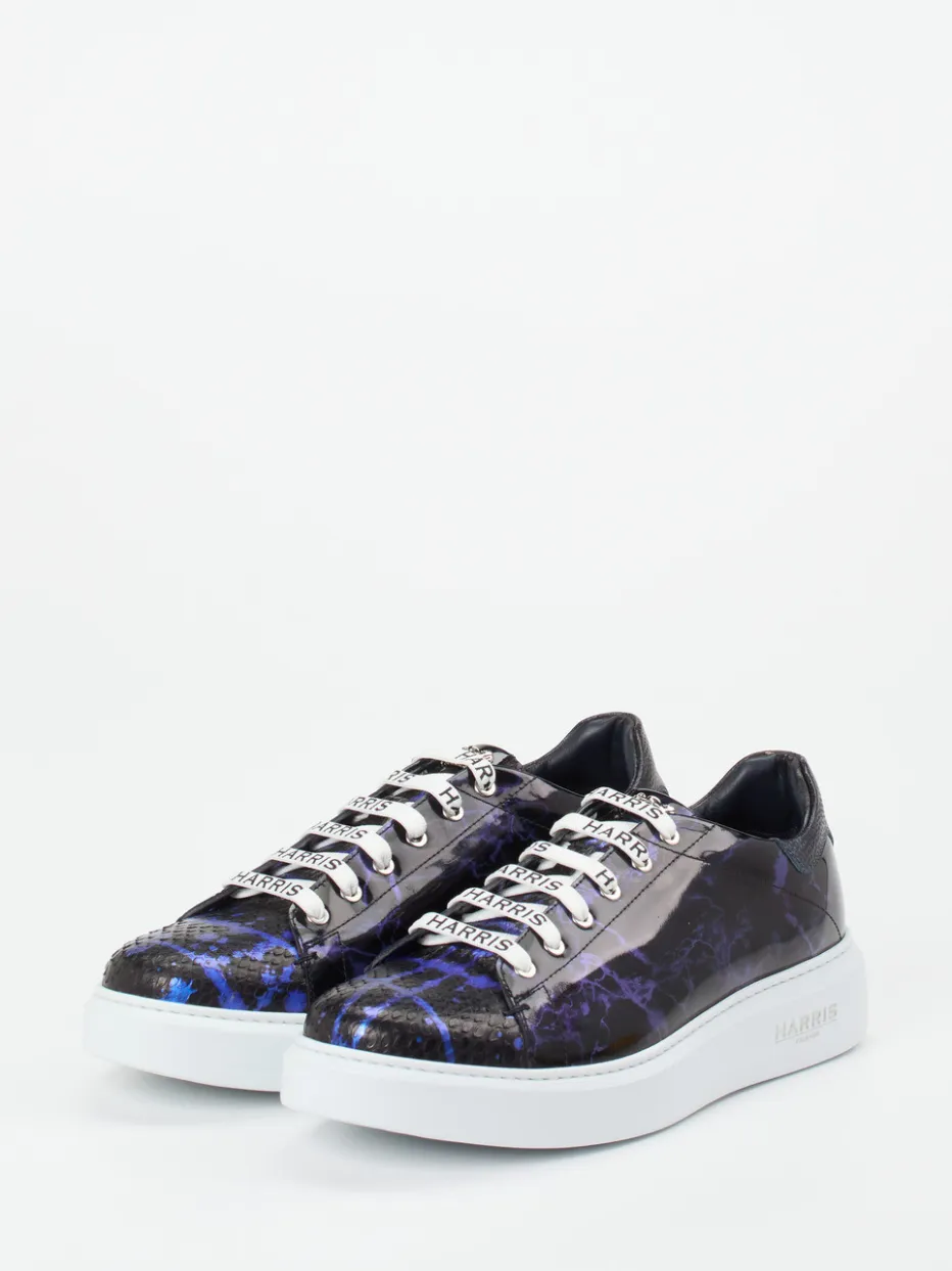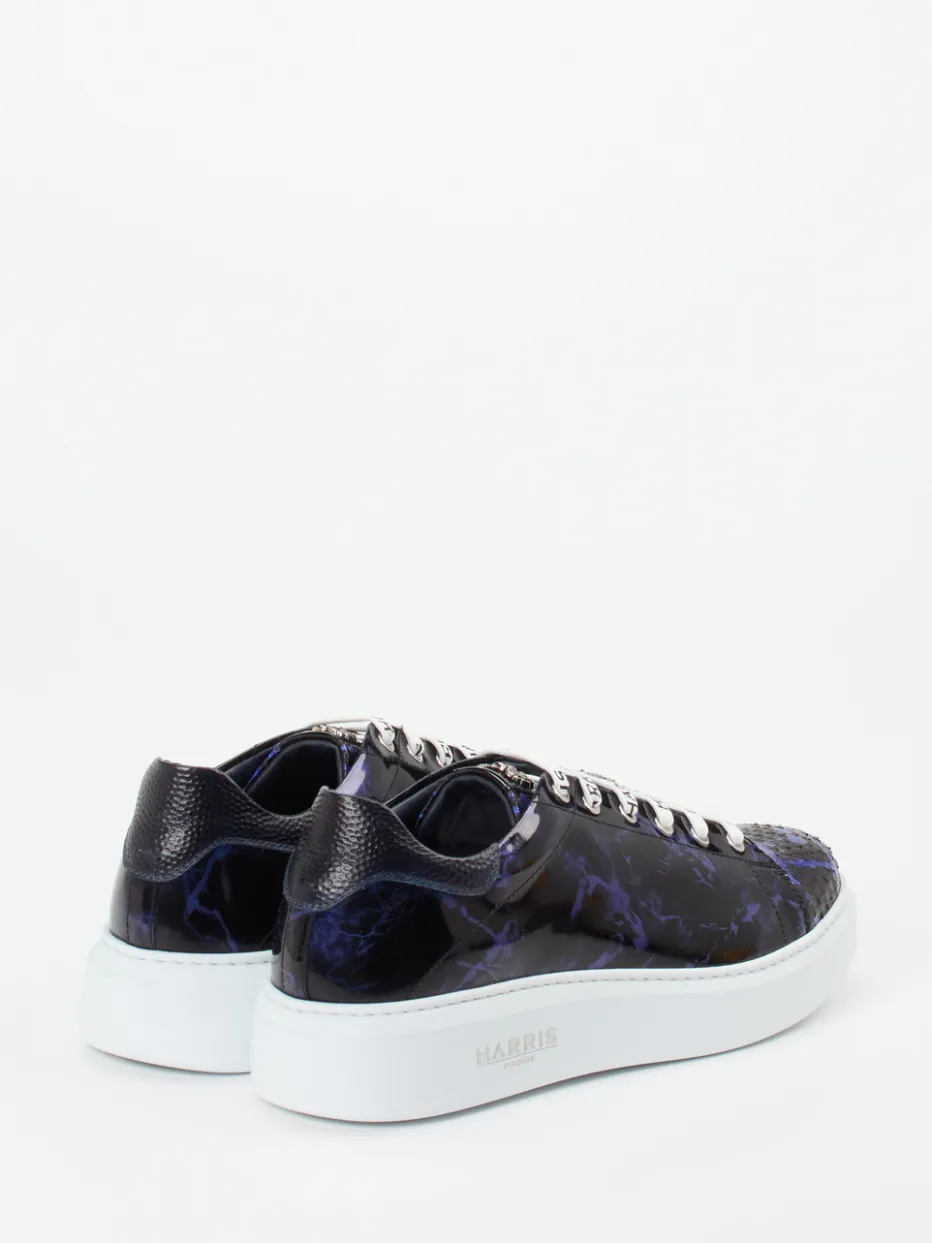 Der extravagante Herren-Sneaker von Harris beeindruckt mit irisierendem Lackleder, markanter Marmor-Optik und hochwertiger Verarbeitung – ein urbanes Statement für trendorientierte Stylings.