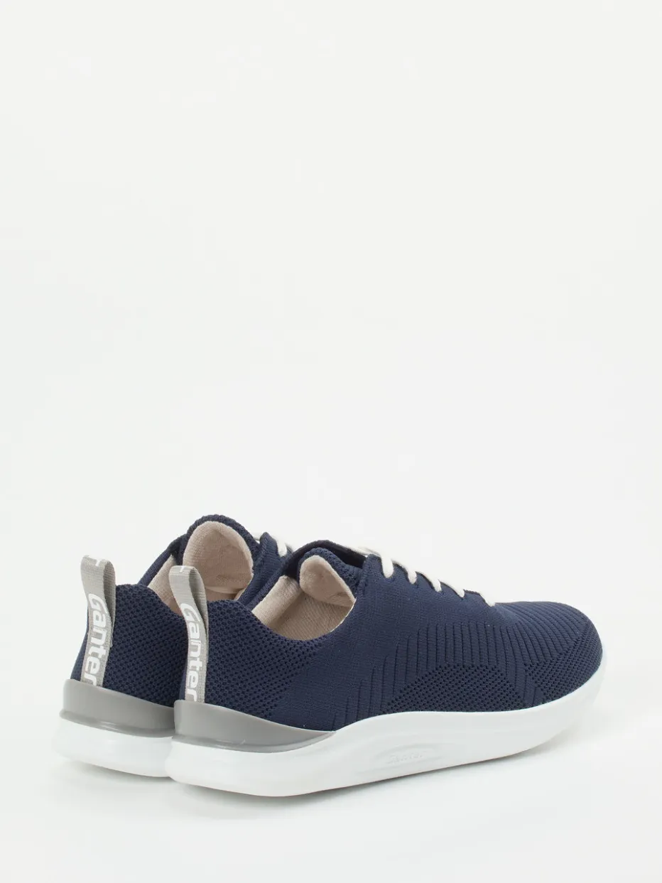 Komfort trifft auf modernes Strickdesign.Dieser Sneaker von Ganter zählt zur Kategorie der Komfort-Sneaker und steht für sportlich-lässige Eleganz. Im hektischen Alltag sorgt das atmungsaktive, gestrickte Textilmaterial in Dunkelblau für luftig-leichten Komfort und ist zugleich ein stilvoller Blickfang. Die ergonomische Passform, gepolsterte Einstiegszonen sowie die rutschhemmende Synthetiksohle garantieren ein angenehmes Gehgefühl. Weiße Schnürsenkel und eine graue Fersenkappe mit Logo-Schlaufe betonen den cleanen Look, während die 4-Punkt-Sohle effektiv Stöße abfedert. Athleisure-inspiriert fügt sich der Sneaker problemlos in relaxed-urbane Styles ein – ideal zu Jogpants oder leichten Denim. Ganter überzeugt mit innovativer Fußgesundheit auf modischer Linie.