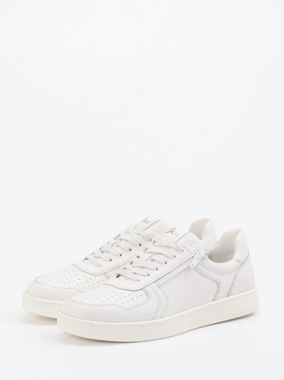 Minimalismus trifft Funktionalität.Sioux präsentiert mit diesem Herren-Sneaker ein Modell, das Stilbewusstsein und Tragekomfort verbindet. Ideal für urbane Alltagswege oder den Weg ins Büro überzeugt der Low-Top mit perforiertem, matt wirkendem Glattleder in Offwhite. Die klassische, schlanke Silhouette trifft auf eine klare Linienführung mit Ton-in-Ton-Nähten. Reißverschlussseitig ergänzt ein dezentes, funktionelles Detail das Schnürsystem. Eine robuste Gummisohle ergänzt den Komfort ebenso wie das textile Innenfutter. Die dezente Ästhetik passt besonders zu minimalistischen Looks. Sioux steht hier für unaufgeregte Eleganz und langlebiges Design.