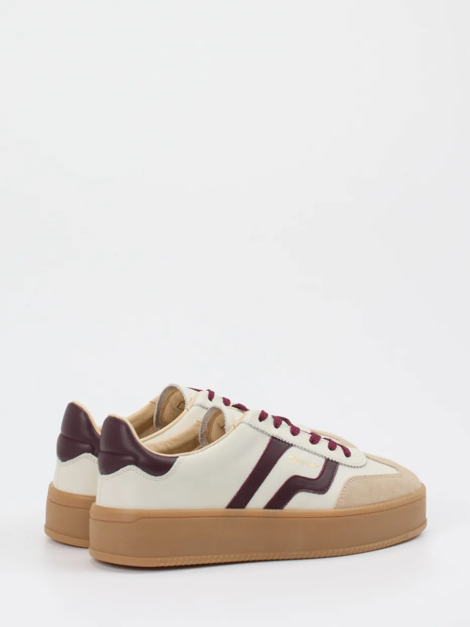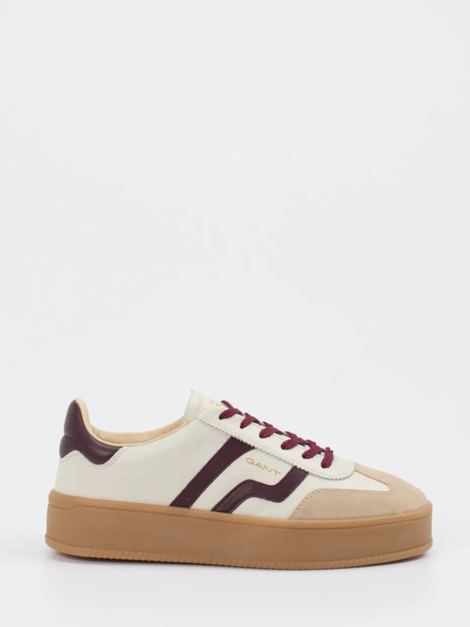 Dieser Gant-Sneaker vereint hochwertiges Kalbleder mit Retro-Details wie farblichen Akzenten und goldfarbenem Logo – ideal für stilbewusste Freizeitlooks.