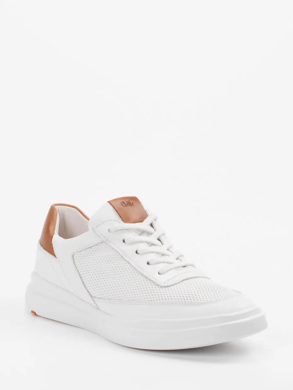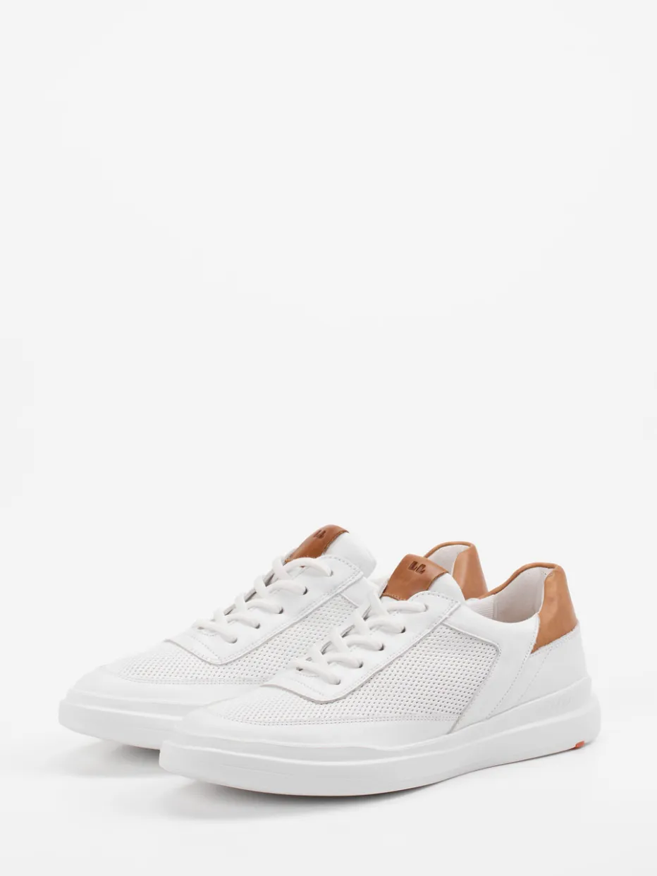 Smarte Leichtigkeit für den Alltag.Lloyd präsentiert einen modernen Herren-Sneaker mit sportiver Note. Ideal für urbane Tagesoutfits bietet das Modell hohen Tragekomfort durch atmungsaktives Textilfutter und Memory-Foam-Fußbett. Gefertigt aus glattem Kalbleder mit mattweißer Oberfläche und cognacfarbenen Akzenten an Ferse und Zunge wirkt der Sneaker clean und stilsicher. Die klassische Silhouette mit Schnürung und kontrastierendem Mesh im Mittelbereich orientiert sich an minimalistischem Streetwear-Design. Dank extraleichter Gummisohle mit griffigem Profil bleibt der Auftritt auch bei längeren Wegen komfortabel. Besonders gut zur Geltung kommt er zu schmalen Chinos oder Ton-in-Ton-Sneaker-Socken. Ein Sneaker für vielseitigen Stil mit klarer Formensprache – typisch Lloyd.
