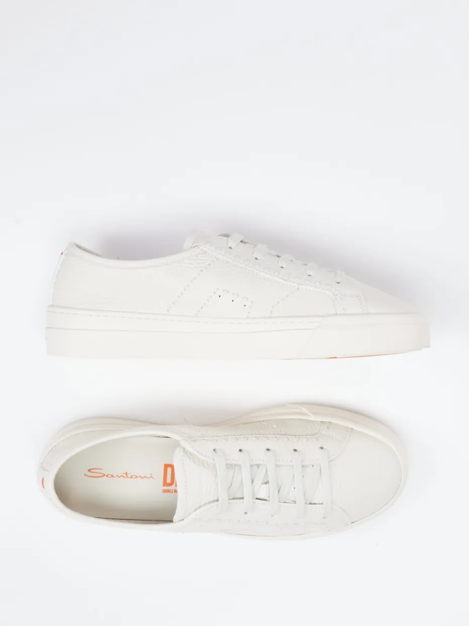 Der italienische Herrensneaker von Santoni überzeugt im minimalistischen Low-Top-Design.
