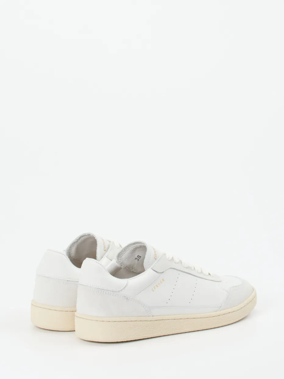 Minimalismus mit Stil.Copenhagen interpretiert den klassischen Low-Top-Sneaker neu – puristisch und hochwertig. Ob beim Stadtbummel oder im Café: Dieser Sneaker aus weißem Kalbleder mit samtig angrauem Velourslederbesatz vereint Form und Funktion im minimalistischen Design. Goldfarbene Logodetails und perforierte Partien veredeln die flache Silhouette, während die flexible Gummisohle in Elfenbein hohen Tragekomfort sichert. Tonale Akzente an Ferse und Zunge betonen die reduzierte Linienführung. Ideal kombinierbar mit Chinos oder Oversize-Shirts – für einen cleanen, urbanen Look mit Retro-Flair. Copenhagen vereint nordisches Designverständnis mit hochwertiger Verarbeitung und Alltagstauglichkeit.