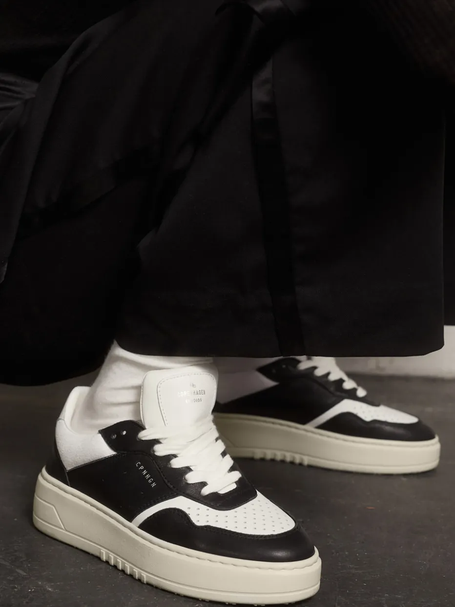 Unaufdringlicher Luxus auf Schritt und Tritt.Copenhagen präsentiert mit dem Sneaker CPH1 ein stilvolles Low-Top-Modell aus edlem Kalbleder. Der Look eignet sich besonders für entspannte Citytouren und trendbewusste Alltags-Outfits. Das matt-glatte Kalbleder überzeugt in monochromem Weiß mit kontrastierenden schwarzen Elementen – ergänzt durch perforierte Partien und ein weißes Logo-Wording. Die auffällige Plateau-Gummisohle und eine klassische Schnürung unterstreichen den Retro-Court-Charakter, inspiriert von minimalistischem Streetwear-Stil. Kombiniert mit Oversized Pieces oder puristischen Looks setzt dieser Sneaker modische Akzente. Copenhagen verbindet urbanen Komfort mit klarer Formsprache und progressivem Designanspruch.