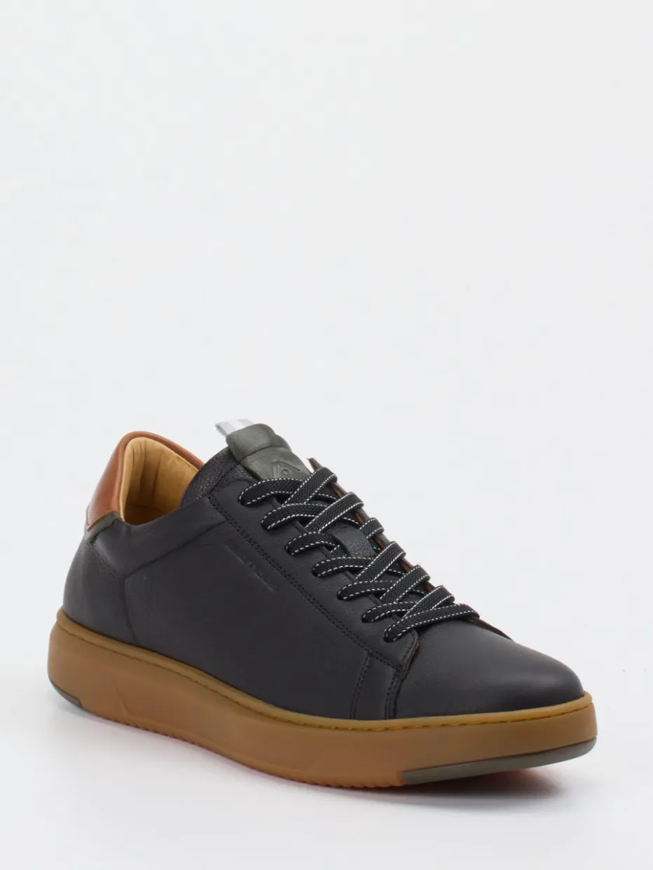 Dieser Herren-Sneaker verbindet hochwertiges, genarbtes Kalbleder mit minimalistischer Linienführung und ausgewählten Farbakzenten – ideal für Alltag und Office-Situationen.