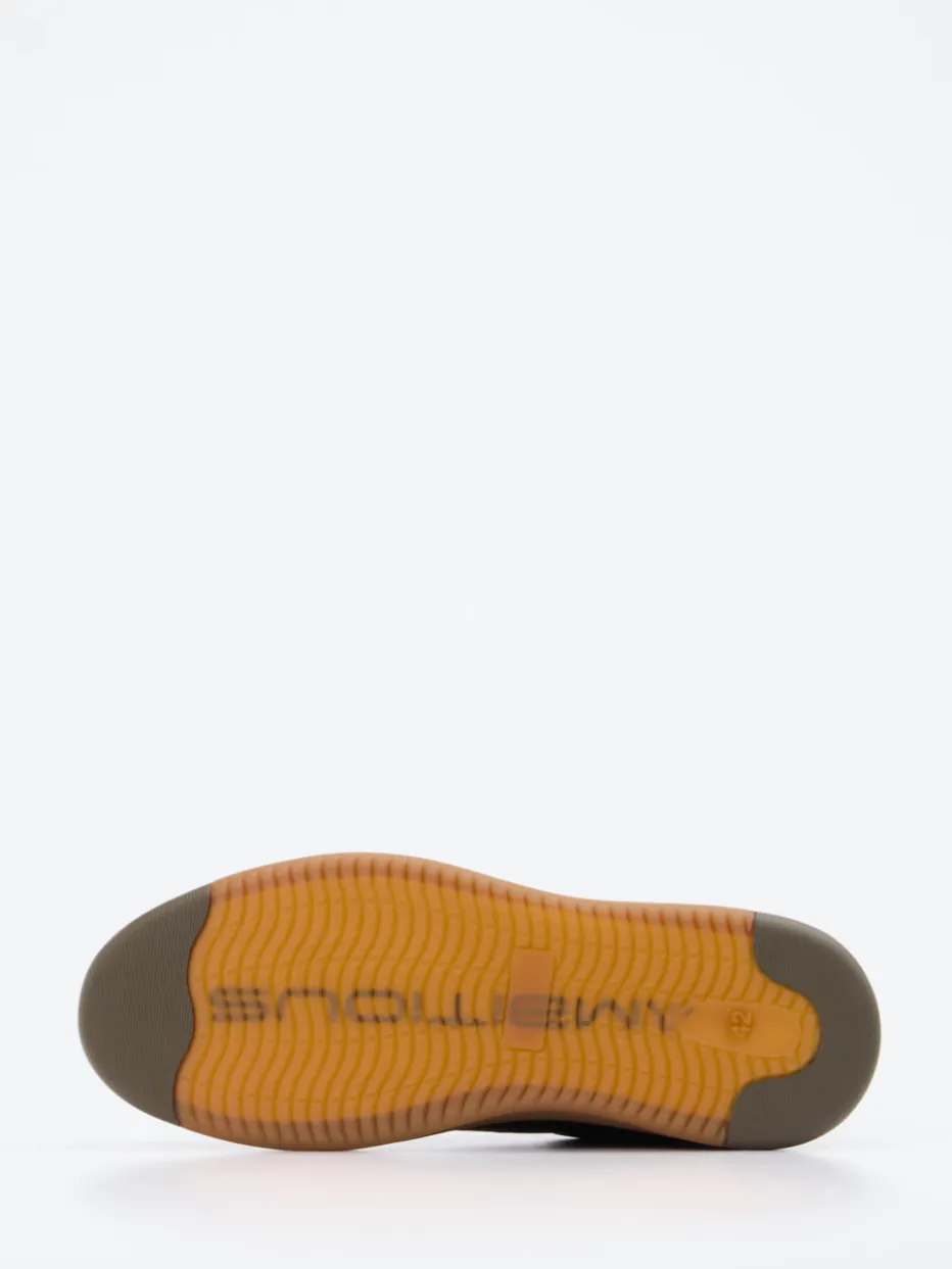 Reduziertes Design mit Farbkante.Ambitious bietet mit diesem Herren-Sneaker ein Modell, das schlichte Eleganz mit stilvoller Farbgestaltung vereint. Ob in der Stadt oder auf dem Arbeitsweg – dieser Low-Top-Sneaker erfüllt moderne Ansprüche an Komfort, Material und Design. Das feine Kalbleder mit genarbter Struktur tritt in tiefem Schwarz auf, akzentuiert durch eine cognacbraune Fersenkappe und olivgrüne Details. Zweifarbige Schnürsenkel und eine kontrastierende Fersenpartie unterstreichen die klare Silhouette. Die Gummisohle mit Markenprägung sorgt für Rutschfestigkeit, während der gepolsterte Einstieg bequemen Halt bietet. Kombiniert mit Casual-Hosen oder urbaner Businesswear entsteht ein stilsicherer Minimal-Look. Ein edler Allrounder – elegant reduziert und alltagstauglich designt.