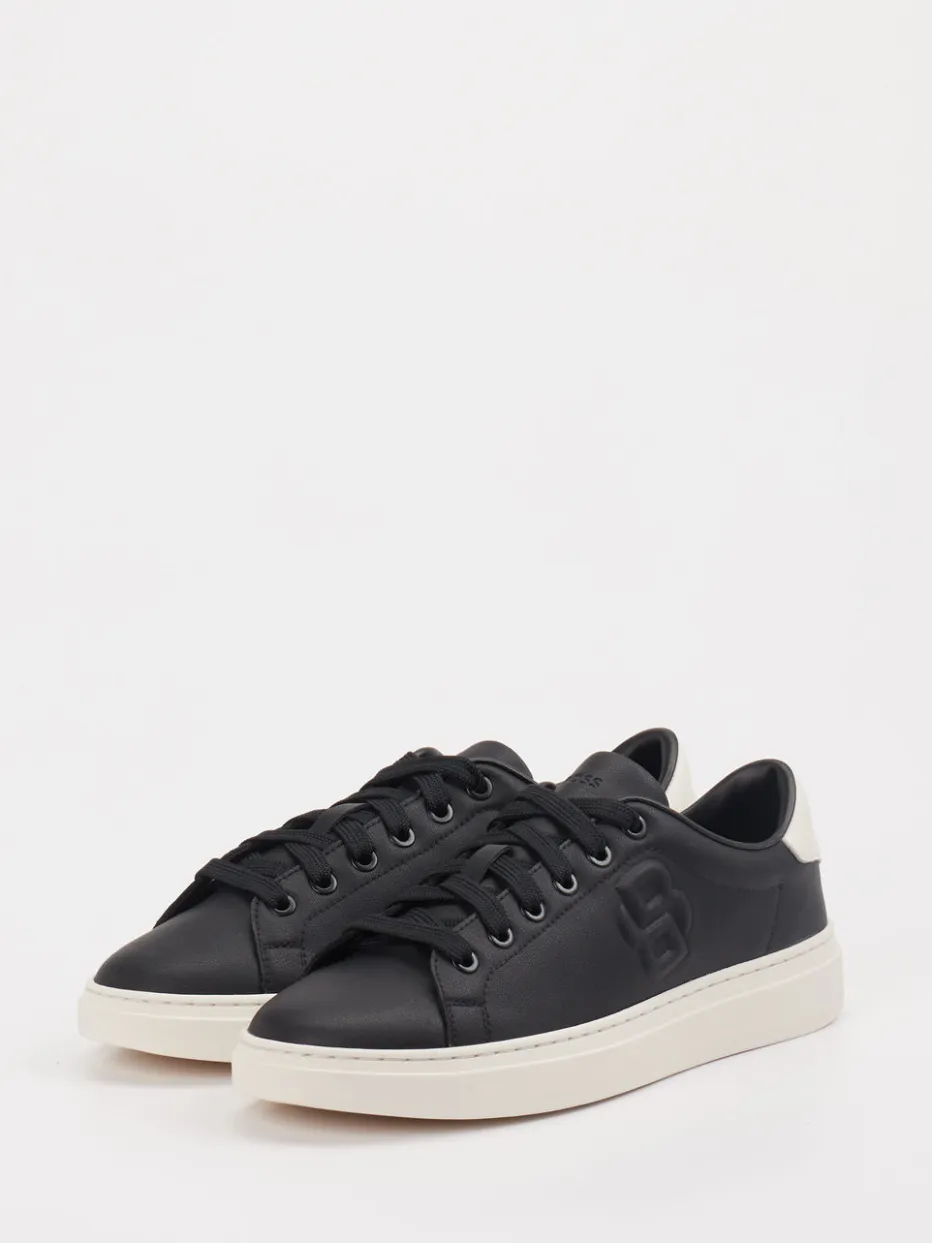 Eleganz trifft klassischen Minimalismus. Boss interpretiert den Herren-Sneaker mit einem urban inspirierten Low-Top-Modell neu. Ideal für moderne Büro-Outfits wie auch in der Freizeit: Das glatte Kalbleder in mattem Schwarz wird durch eine Offwhite-Fersenpartie mit dezentem Kontrast veredelt. Die Ton-in-Ton-Logo-Prägung unterstreicht den zurückhaltenden „Quiet Luxury“-Charakter. Die klassische Form und die gepolsterte Ferse sorgen für Tragekomfort, der durch das Hightech-Mesh-Innenfutter ergänzt wird. Die rutschhemmende Gummisohle komplettiert den funktionalen Aufbau. Puristisch gestaltete Looks oder monochrome Kombinationen profitieren besonders von diesem Design. Ein Modell, das souveräne Schlichtheit mit markentypischer Hochwertigkeit verbindet.