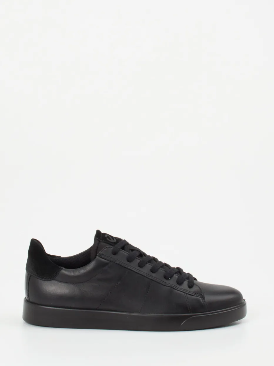 Ob auf dem Weg ins Büro oder beim Stadtbummel – das Modell aus weichem Kalbleder mit samtig angeschliffenen Veloursdetails garantiert Stil und Komfort. Mattes Schwarz, eine klassische Low-Top-Silhouette und dezente Ton-in-Ton-Nähte unterstreichen den cleanen Look. Innen sorgt atmungsaktives Mesh-Futter für Tragekomfort, eine leichte Gummisohle bietet sicheren Halt. Die tonale Schnürung, ECCO-Logos und ein gepolsterter Fersenkragen runden das Design ab – perfekt für All-Black-Outfits und zeitloses Styling.
