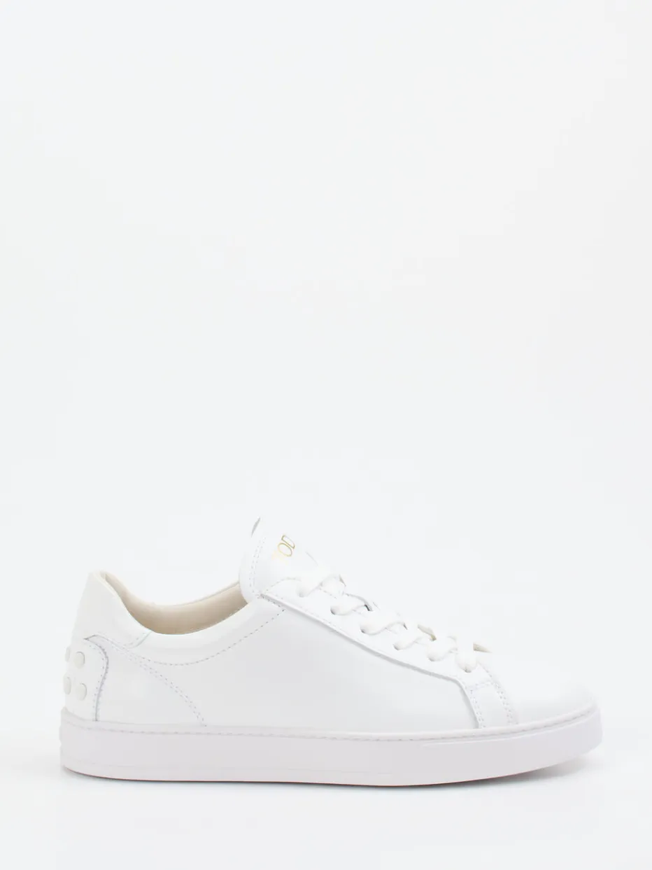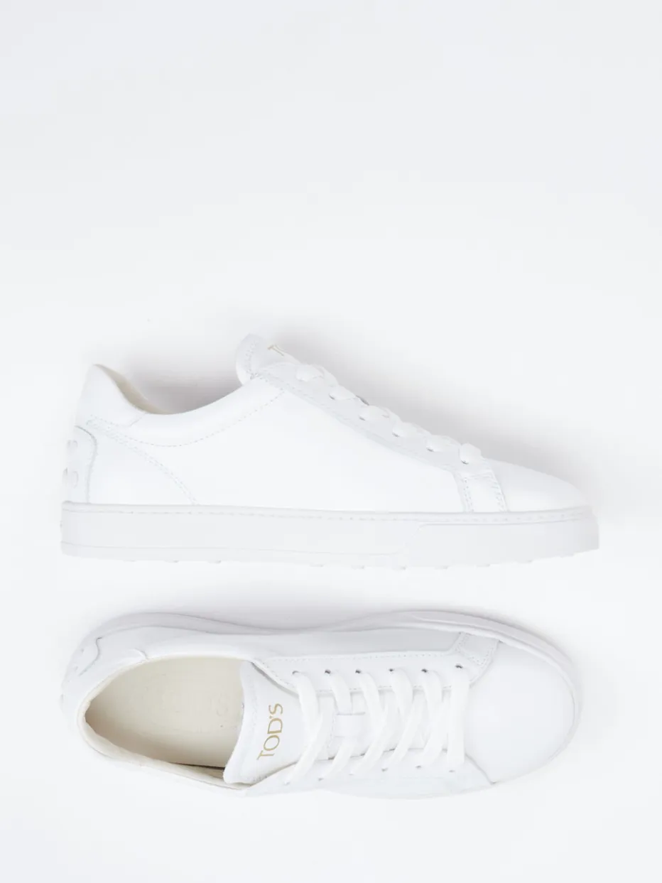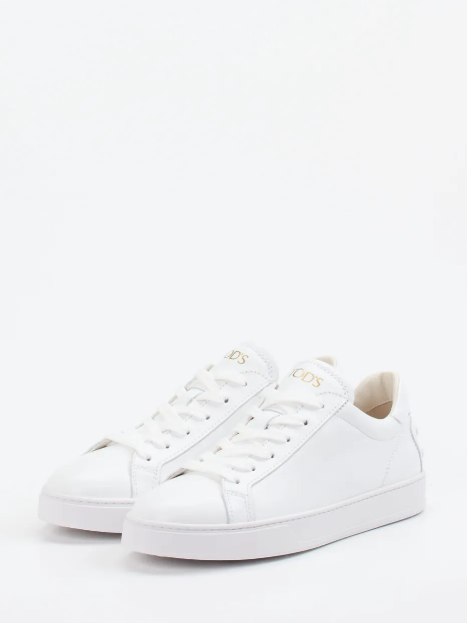 Schlichte Raffinesse am Fuß.Tod’s präsentiert mit diesem Sneaker ein stilvolles Modell für den Alltag. Ideal für urbane Looks zwischen Business und Freizeit punktet der Low-Top mit hochwertigem, glänzendem Kalbleder in reinem Weiß. Dezente Ton-in-Ton-Nähte, ein goldfarbener Logoprint auf der Zunge sowie die markentypischen Gummi-Noppen an der Ferse setzen elegante Akzente. Innen sorgt weiches Kalblederfutter für hohen Komfort, das Fußbett ist angenehm gepolstert. Minimalistische Form und Schnürverschluss runden das cleane Design ab – perfekt für den „Quiet Luxury“-Trend. Ein Premium-Sneaker, der dezente Statements mit kompromissloser Qualität verbindet.