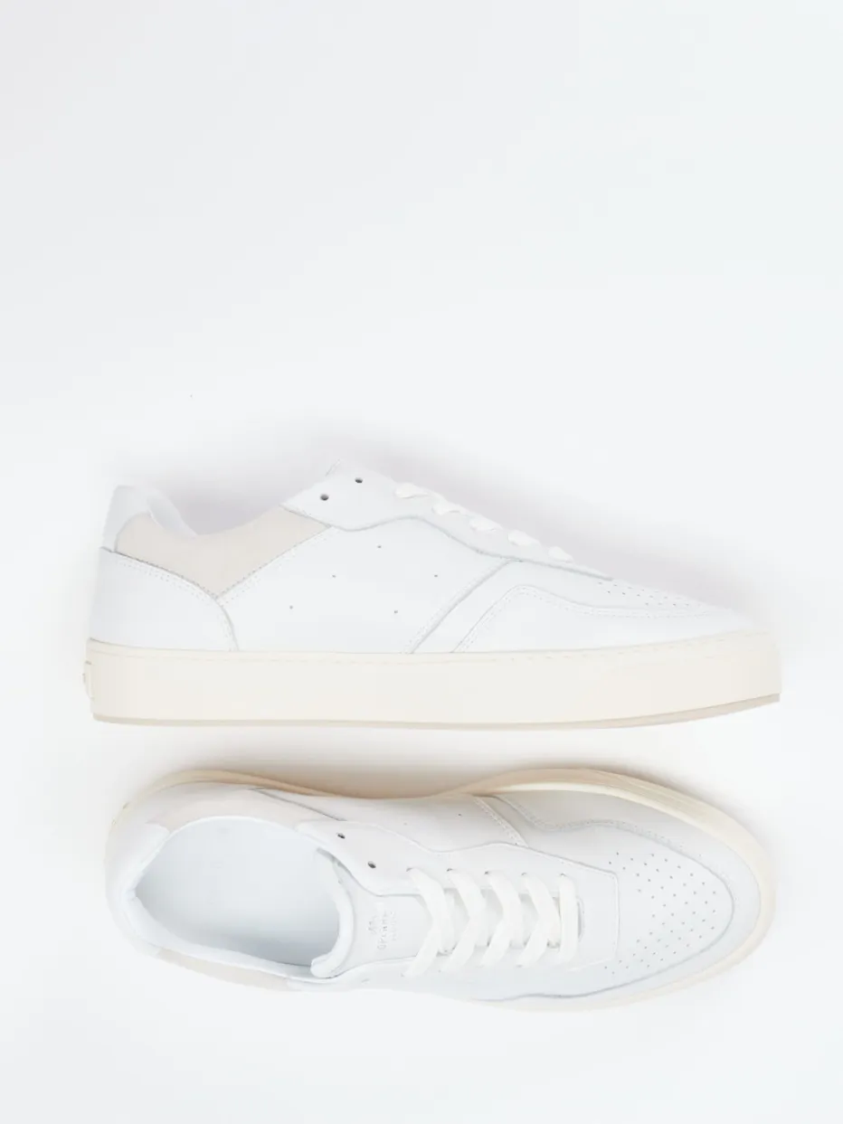 Cleanes Understatement auf ganzer Linie.Copenhagen zeigt mit diesem Sneaker eine raffinierte Interpretation urbaner Schlichtheit. Ideal für entspannte Büro-Outfits und stilvolle Alltagslooks: Der weiß gehaltene Low-Top-Sneaker präsentiert sich in geschmeidigem Kalbleder mit matt wirkender Oberfläche und dezent eingesetzten Veloursleder-Patches. Ton-in-Ton-Nähte sowie perforierte Details im Zehenbereich unterstreichen das minimalistisch-sportive Design. Die klassische Silhouette und rutschhemmende Gummisohle ergänzen Funktionalität und Tragekomfort, während das gepolsterte Wechselfußbett und Textilfutter innen Komfort garantieren. Unverkennbar skandinavisch, passt der Sneaker zu monochromen Looks oder lässigem Layering. Hochwertige Materialien treffen auf leise Ästhetik – typisch Copenhagen.