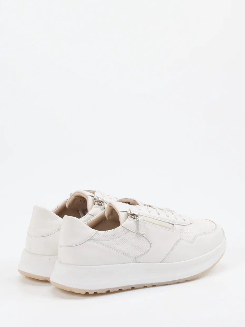 Komfort trifft minimalistisches Design.Sioux steht für hochwertige Damen-Sneaker mit modischer Funktionalität. Dieses Modell vereint klassisches Kalbleder mit subtilen Designakzenten im angesagten Quiet-Luxury-Stil. Ideal für entspannte Alltagsmomente sorgt der Sneaker dank weichem Kalbleder, matt strukturierter Optik und perforierten Elementen für ein reduziertes, hochwertiges Erscheinungsbild. Die Kombination aus Schnürung und silberfarbenem Reißverschluss erleichtert das An- und Ausziehen, während die gepolsterte Gummisohle und das wechselbare Fußbett den Gehkomfort erhöhen. Dezente Offwhite- und Beigetöne unterstreichen die stilvolle Zurückhaltung und lassen sich vielseitig kombinieren. Komfortweite J und durchdachtes Design – typisch Sioux.