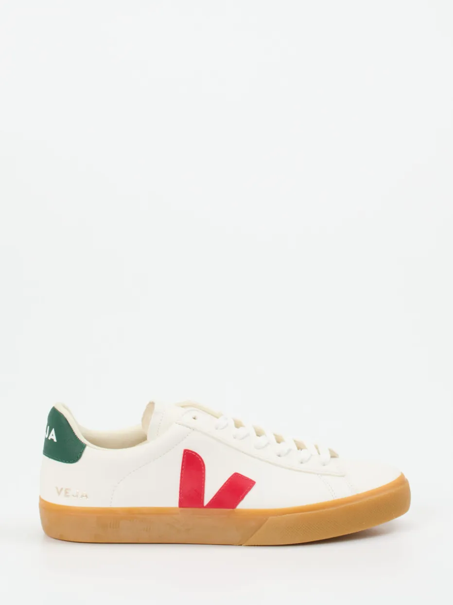Retro-Charme in nachhaltiger Ausführung.VEJA präsentiert diesen Unisex-Sneaker als stilvolle Hommage an klassische Court-Silhouetten. Ideal für lässige Tageslooks vereint er reduziertes Design mit charakterstarken Details. Das hochwertige Kalbleder zeigt sich matt und fein genarbt in Offwhite, ergänzt durch kirschrote „V“-Logos und einen kontrastierenden Fersenabschluss in Waldgrün. Die flache Form sowie die honigfarbene Gummisohle unterstreichen den minimalistischen Retro-Charakter. Innen sorgt ein atmungsaktives Textilfutter mit herausnehmbarem Fußbett für Komfort. Im Streetstyle und bei Sustainable Fashion ist dieses Modell gleichermaßen zuhause. Nachhaltige Materialien treffen auf visuelles Understatement mit Markenprofil.