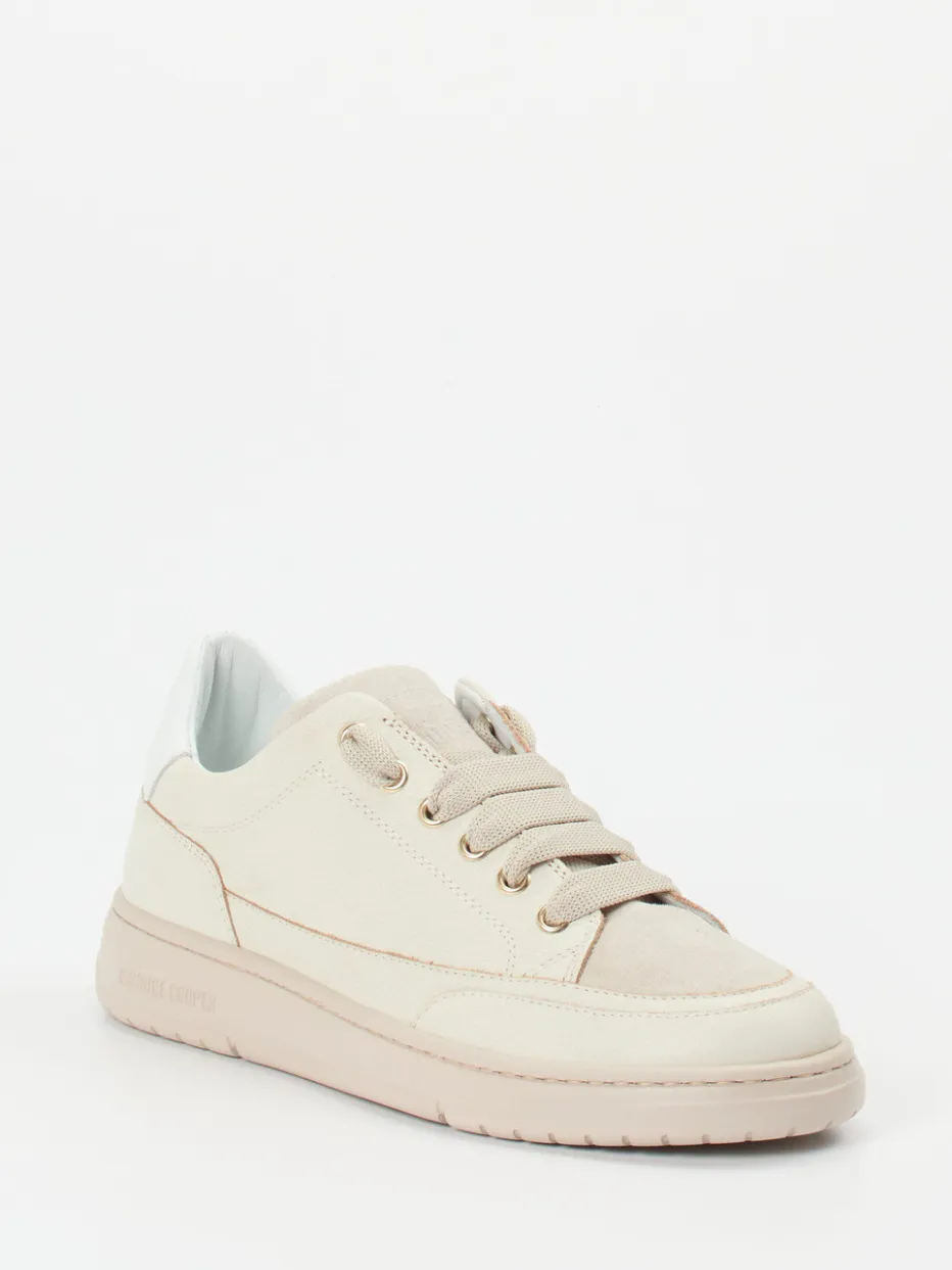 Dieser Candice Cooper Sneaker vereint glattes und samtig angeschliffenes Kalbleder zu einem harmonischen Look in dezenten Naturtönen. Ideal für minimalistische Alltagslooks mit Komfortfaktor.