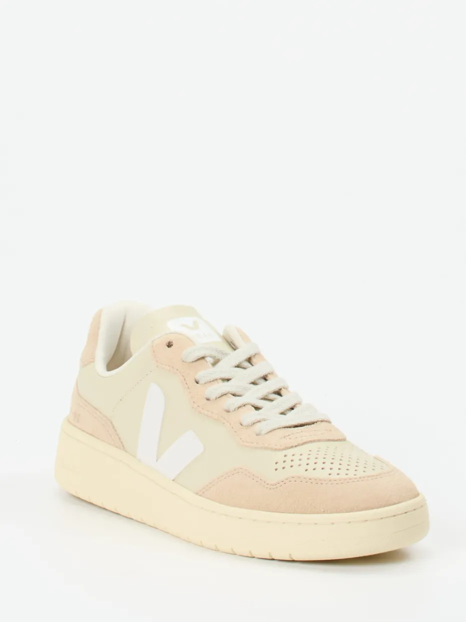 Ob beim Citybummel oder im Büroalltag – dank seines atmungsaktiven Meshfutters, der flexibilisierten Gummisohle und des gepolsterten Fußbetts überzeugt der Sneaker auch funktional. Der Obermaterialmix aus glattem und samtig angeschliffenem Kalb- sowie Veloursleder stammt aus ökologischer Landwirtschaft. Die tonalen Nähte, perforierte Zehenbox und das weiße V-Logo akzentuieren den cleanen Retro-Look. Streetwear-nah und dennoch edel im Ausdruck, eignet sich der Schuh ideal für Modern-Minimal-Looks.