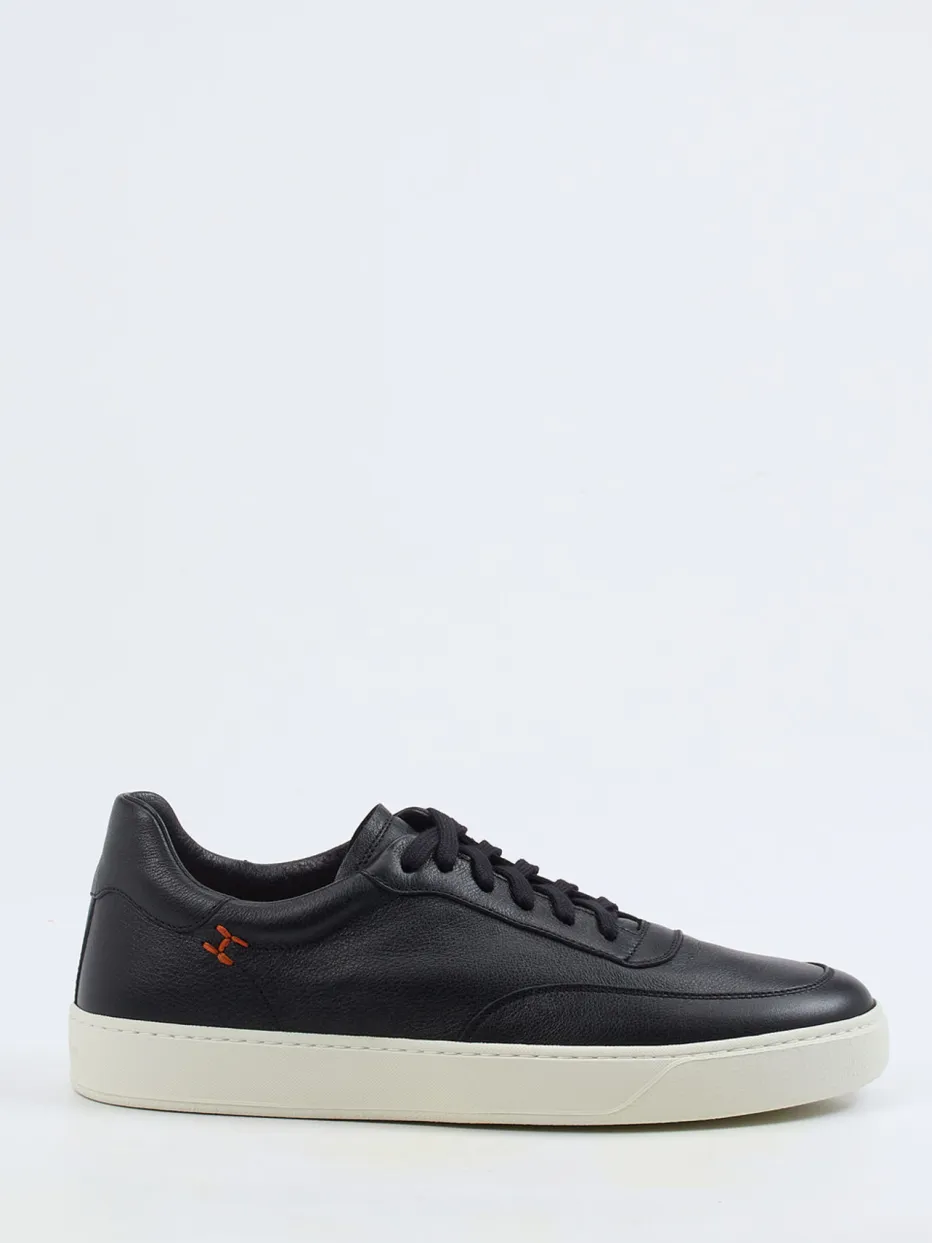 Ob beim Weg ins Büro oder im urbanen Alltag – der Sneaker überzeugt mit geschmeidigem Kalbleder in dezent genarbter Struktur, kombiniert mit einer kontrastierenden Offwhite-Gummisohle. Die klare Silhouette, orangefarbene Logo-Stickerei und Ton-in-Ton-Nähte verleihen ihm einen modernen Look, der sich von Streetwear bis Business-Casual vielseitig einsetzen lässt. Textilfutter und herausnehmbares Fußbett sorgen dabei für spürbaren Komfort. Ein Schuh im Zeichen von „Quiet Luxury“ und cleanem Design.