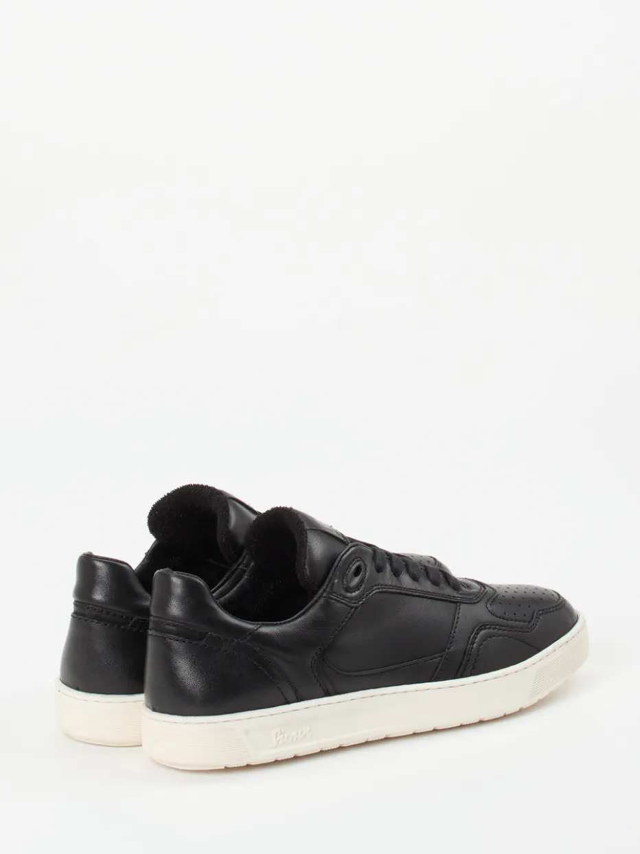 Stilvolle Zurückhaltung im Alltag.Der schwarze Sneaker von Sioux verbindet klassische Formgebung mit funktionalen Eigenschaften. Perfekt für Büro und Freizeit zeigt sich das Modell im matten Kalbleder mit dezenter Perforation auf der Zehenkappe. Die tonige Schnürung, Ton-in-Ton-Nähte und der gepolsterte Schaftrand betonen das minimalistische Streetwear-Design. Die cremeweiße Gummisohle ist flach, rutschhemmend und flexibel – ideal für den täglichen Einsatz. Innen sorgen Frotteefutter und ein herausnehmbares Supersoft-Fußbett für erstklassigen Komfort. Ein Leder-Sneaker für gepflegte Looks mit Understatement-Charakter.