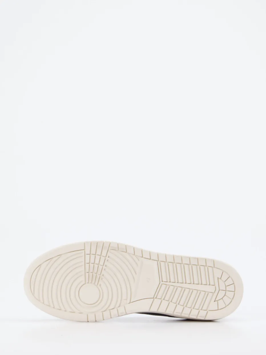 Ob beim Stadtbummel oder entspannten Café-Besuch – das fein strukturierte Nubukleder in Dunkelblau bietet angenehmen Tragekomfort und einen souveränen Auftritt. Die klassische, flache Form ist von Retro-Sneakern inspiriert, während weiße Kontrastnähte, eine cremefarbene Fersenkappe und dezente Logo-Prägungen markante Details setzen. Der Schnürverschluss sorgt für sicheren Halt, die dicke Gummisohle mit Basketball-Profil für Trittsicherheit und Komfort. Modern interpretiert im Color-Blocking-Trend und ideal zu Chino oder Denim.
