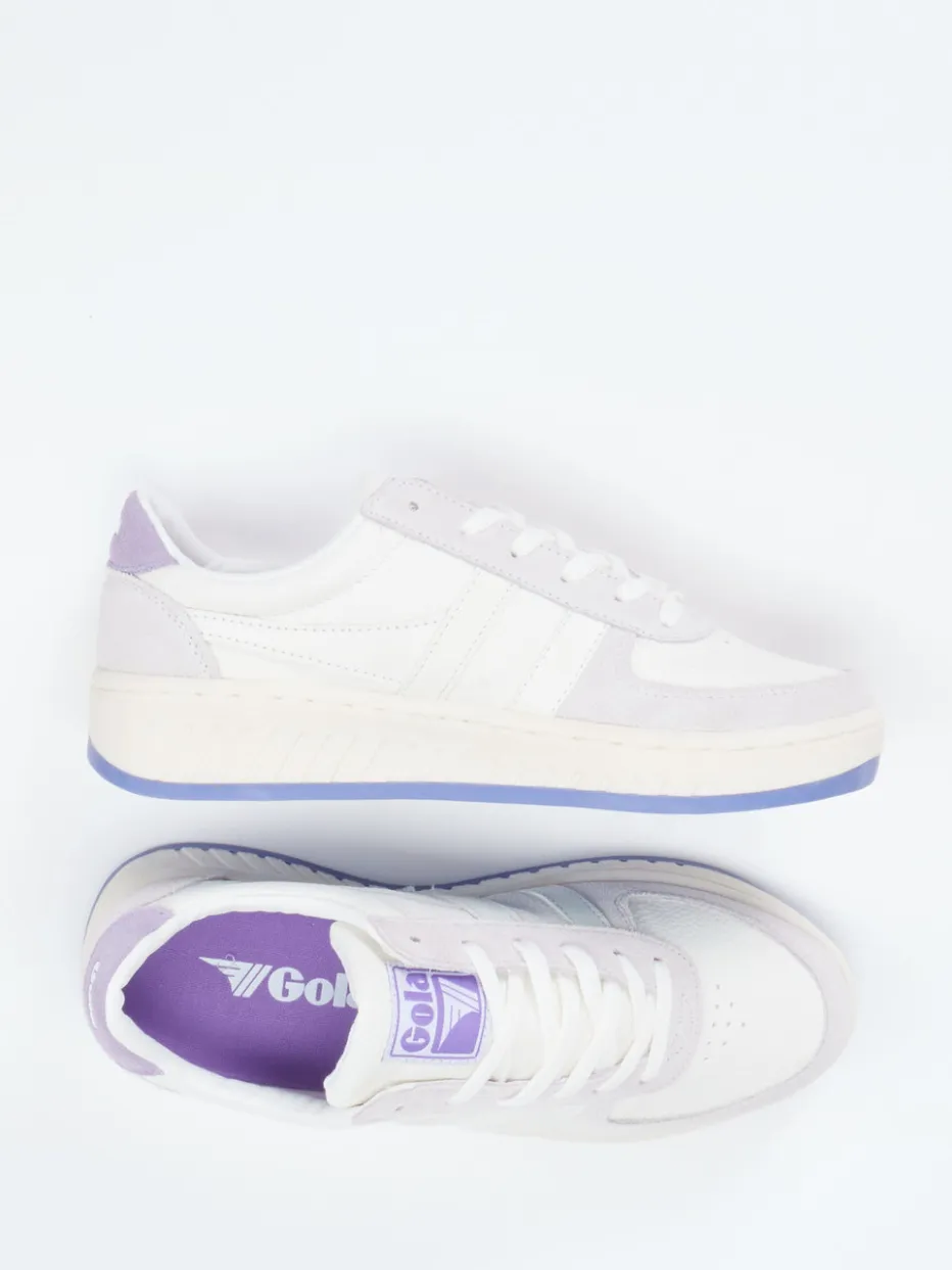 Stilvoll durch den Alltag.Gola präsentiert einen Damen-Sneaker mit subtiler Farbgebung und trendigem Retro-Appeal. Für entspannte City-Tage oder den Weg zum Lieblingscafé bietet dieser Low-Top Sneaker zuverlässigen Komfort. Weißes Nubukleder trifft auf samtig angeschliffenes Veloursleder in Flieder und Hellgrau; die genarbte Oberfläche ergänzt den hochwertigen Look. Lavendelfarbene Elemente wie die Gummisohle oder das Wechselfußbett setzen sanfte Akzente. Die klassische Silhouette mit Schnürung, Logo-Prints und gepolsterter Lasche sorgt für angenehmen Tragekomfort und verleiht einen sportlich-eleganten Auftritt. Passt ideal zu Cropped Jeans und minimalistischen Outfits. Gola steht für stilbewusste Designs mit durchdachter Alltagstauglichkeit.