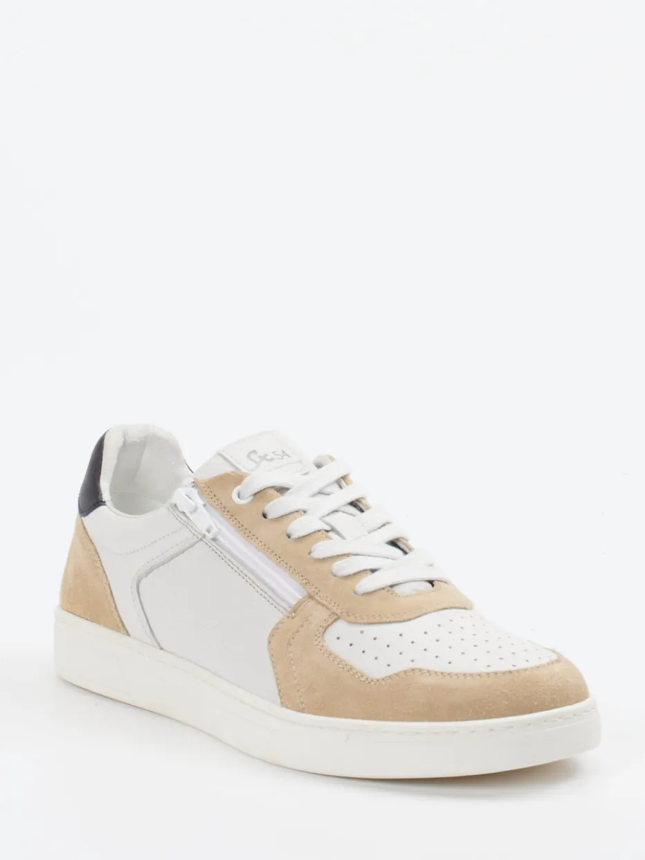 Eleganter Casual-Komfort für jeden Tag.Sioux präsentiert einen Herren-Sneaker, der moderne Streetwear-Einflüsse mit klassischer Lederverarbeitung kombiniert. Ob beim Stadtbummel oder im Büroalltag – durch das hochwertige Leder mit genarbter Oberfläche und samtigem Veloursbesatz bietet der Schuh ein angenehmes Tragegefühl. Die Farbkombination aus Offwhite und Beige wirkt zurückhaltend-edel, während der seitliche Reißverschluss das An- und Ausziehen erleichtert. Eine perforierte Zehenkappe, klassische Schnürung und rutschhemmende Gummisohle runden das Design ab. Besonders gut passt der Look zu hellen Chinos oder neutralen Basics. Sioux steht für handwerkliche Qualität und entspannten Tragekomfort im modernen Design.