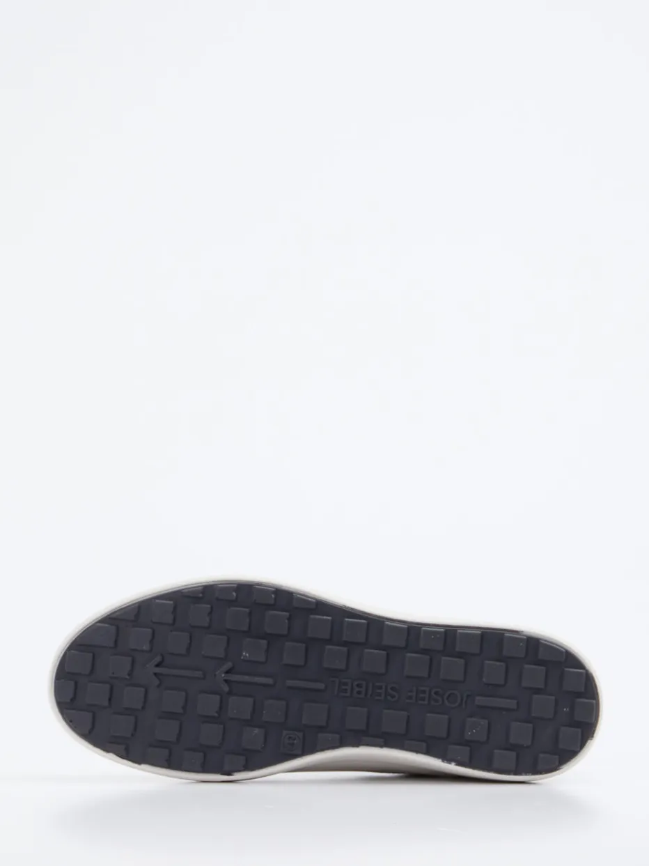 Vielseitiger Komfort im urbanen Stil.Josef Seibel präsentiert mit diesen Sneakern aus weißem Leder einen Schuh für Alltag und Büro. Das matte Glattleder trifft auf eine klassisch-runde Silhouette und dezente Akzente in Schwarz und Braun, während der silberfarbene Reißverschluss die Schnürung sinnvoll ergänzt. Innen sorgt ein ledergefüttertes, weich gepolstertes Wechselfußbett für hohen Komfort – ideal für längere Strecken. Die profilierte Gummisohle unterstützt sicheren Halt, selbst auf urbanem Pflaster. Inspiriert vom „Quiet Luxury“-Trend passt das zurückhaltende Design zu modernen Casual-Looks. Ein komfortbetonter Sneaker mit durchdachten Details und stilvoller Zurückhaltung.
