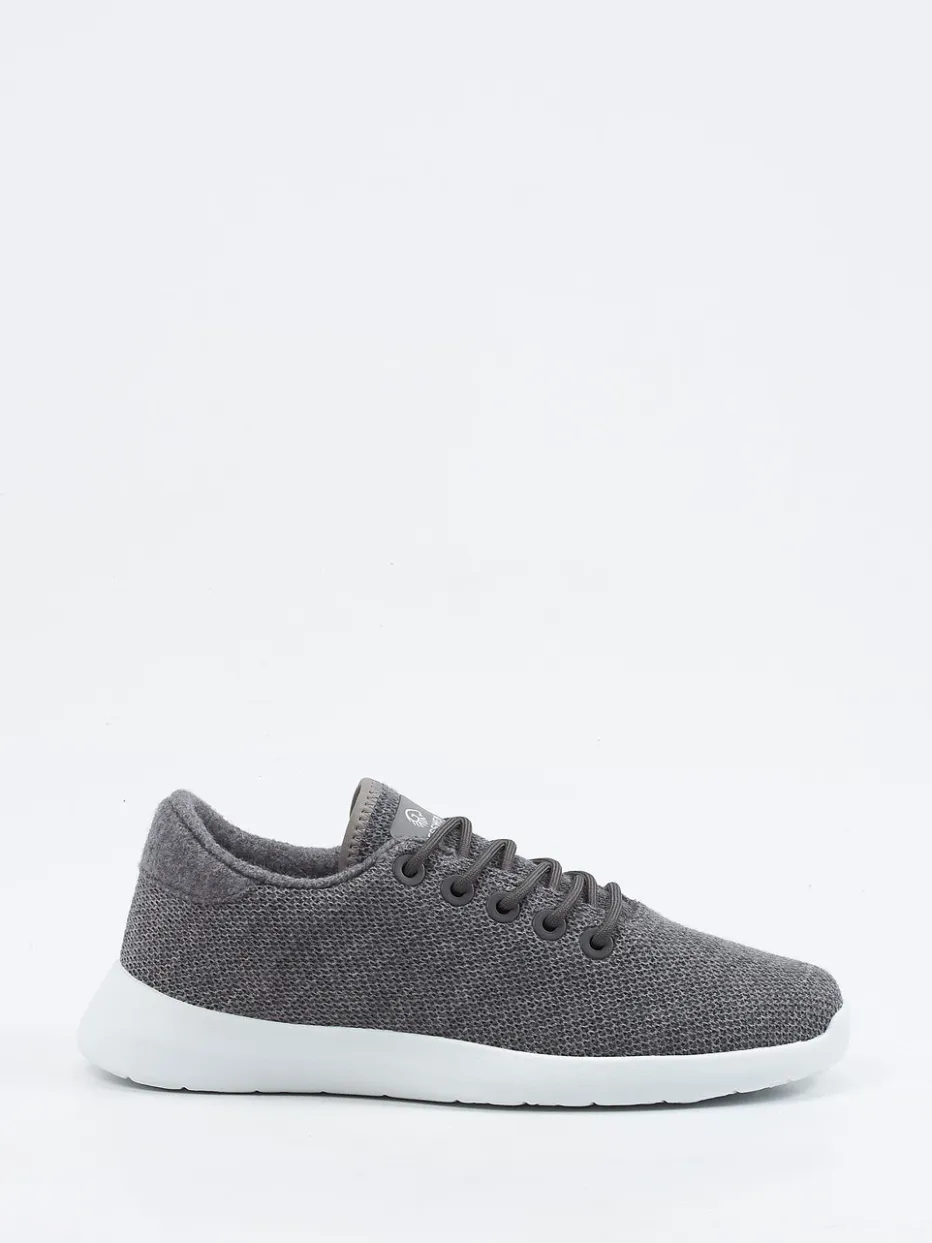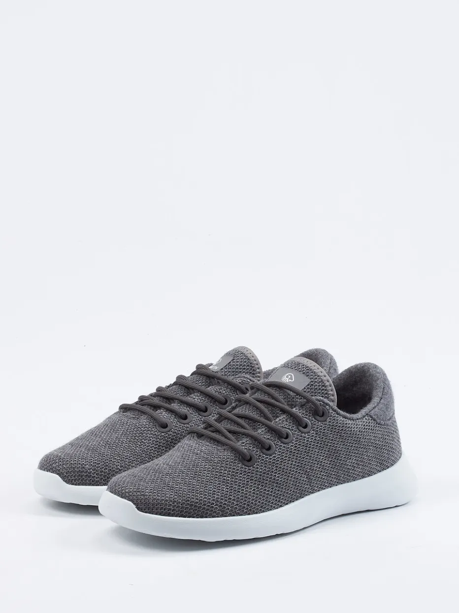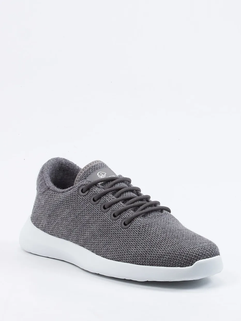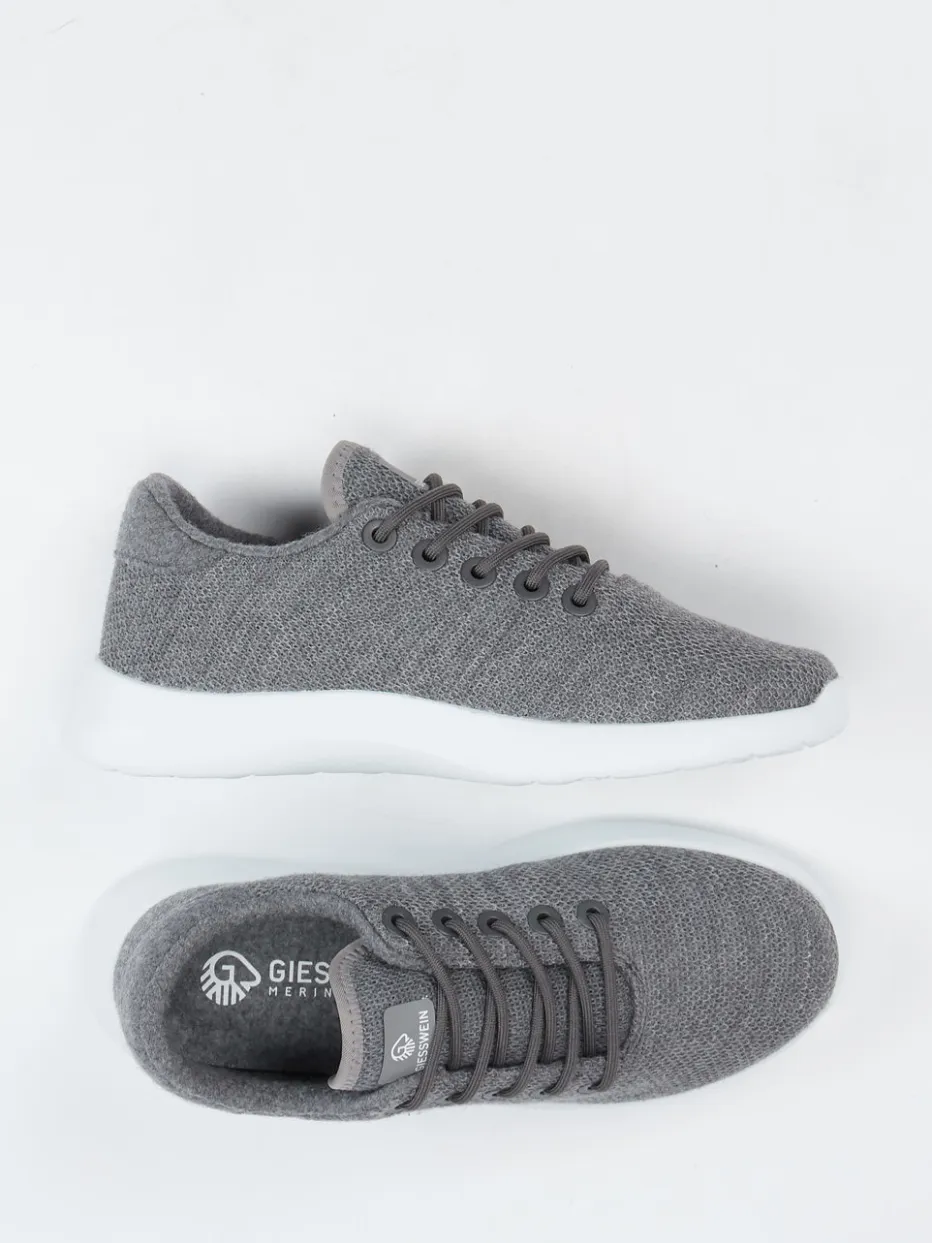 Der graue Sneaker von Giesswein vereint atmungsaktive Merinowolle mit leichter Gummisohle – ideal für urbane Minimalisten mit Komfortanspruch.