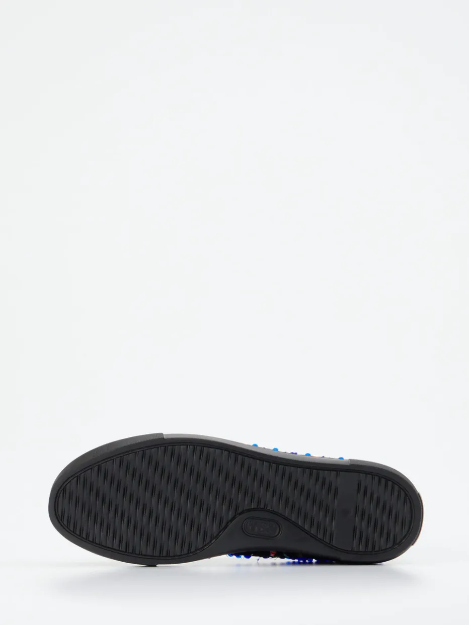 Für glänzende Auftritte – auch abseits der Tanzfläche.Thierry Rabotin präsentiert einen Damen-Sneaker mit auffälligem Paillettenfinish. Ideal für Partynächte oder expressive Freizeitlooks: Das Modell vereint schwarzes Metallic-Material mit einer glitzernden Oberfläche aus mehrfarbigen Pailletten. Die klassische Rundform, stabile Glattleder-Fersenkappe und türkisfarbenes Innenfutter sorgen für Komfort und visuelle Tiefe. Eine profilierte Gummisohle unterstreicht den Streetwear-Anspruch. Inspiriert vom Y2K-Trend verleiht dieser Sneaker jedem Outfit modische Strahlkraft. Perfekt zu Oversize-Shirts oder minimalistischer Tasche mit Metallic-Details. Ein Statement-Sneaker mit besonderem Designfokus – exklusiv von Thierry Rabotin.