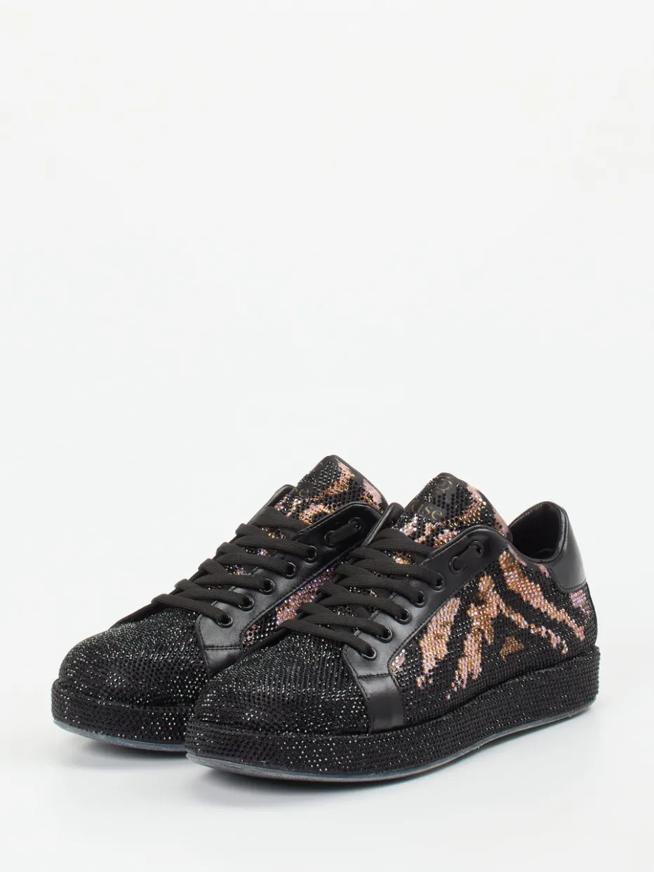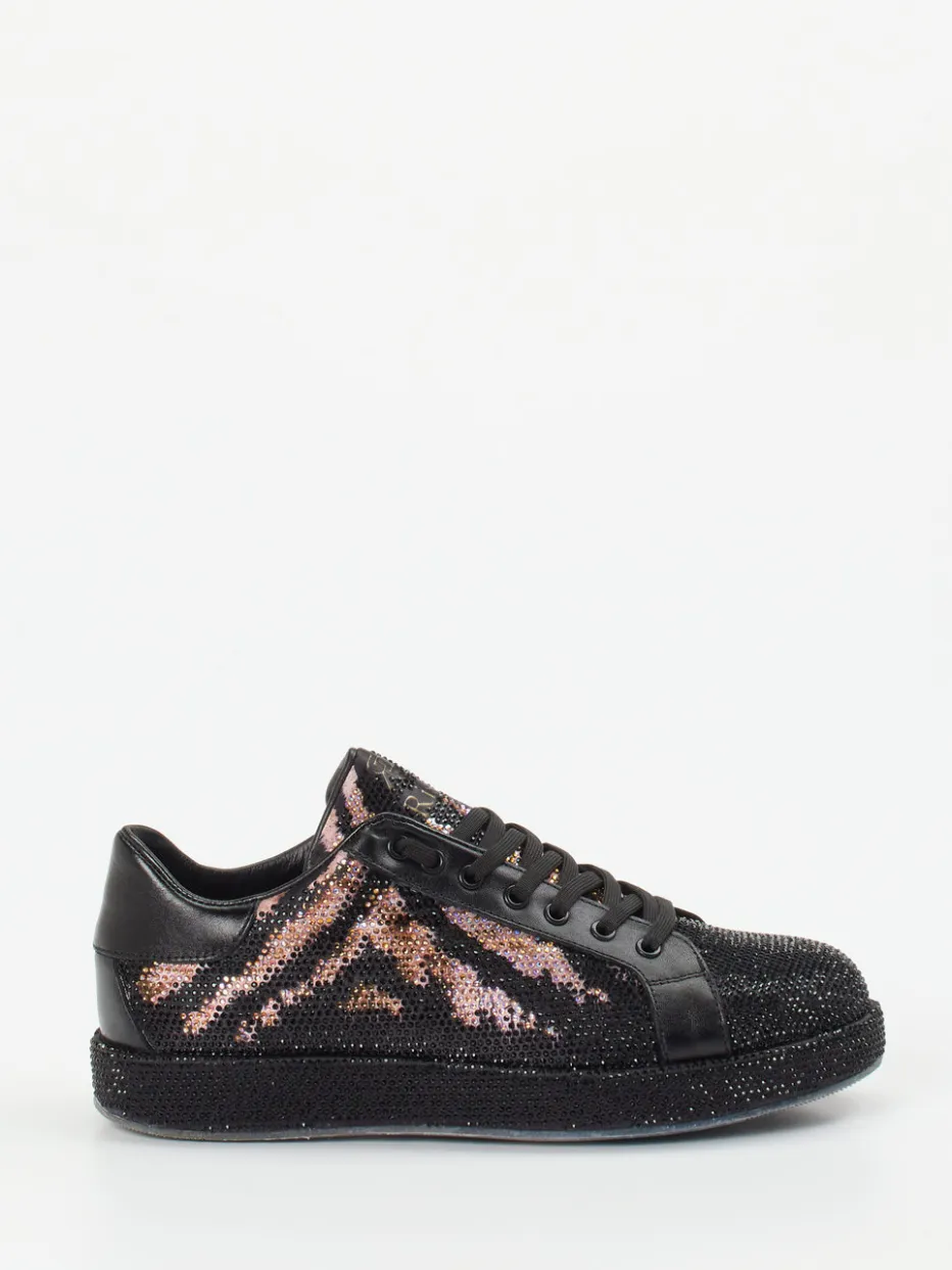 Ein expressiver Sneaker von Rise, der durch metallischen Glanz, Allover-Strass und trendigen Animal-Print Streetstyle und Glamour vereint. Ideal für auffällige Looks mit Y2K-Flair.
