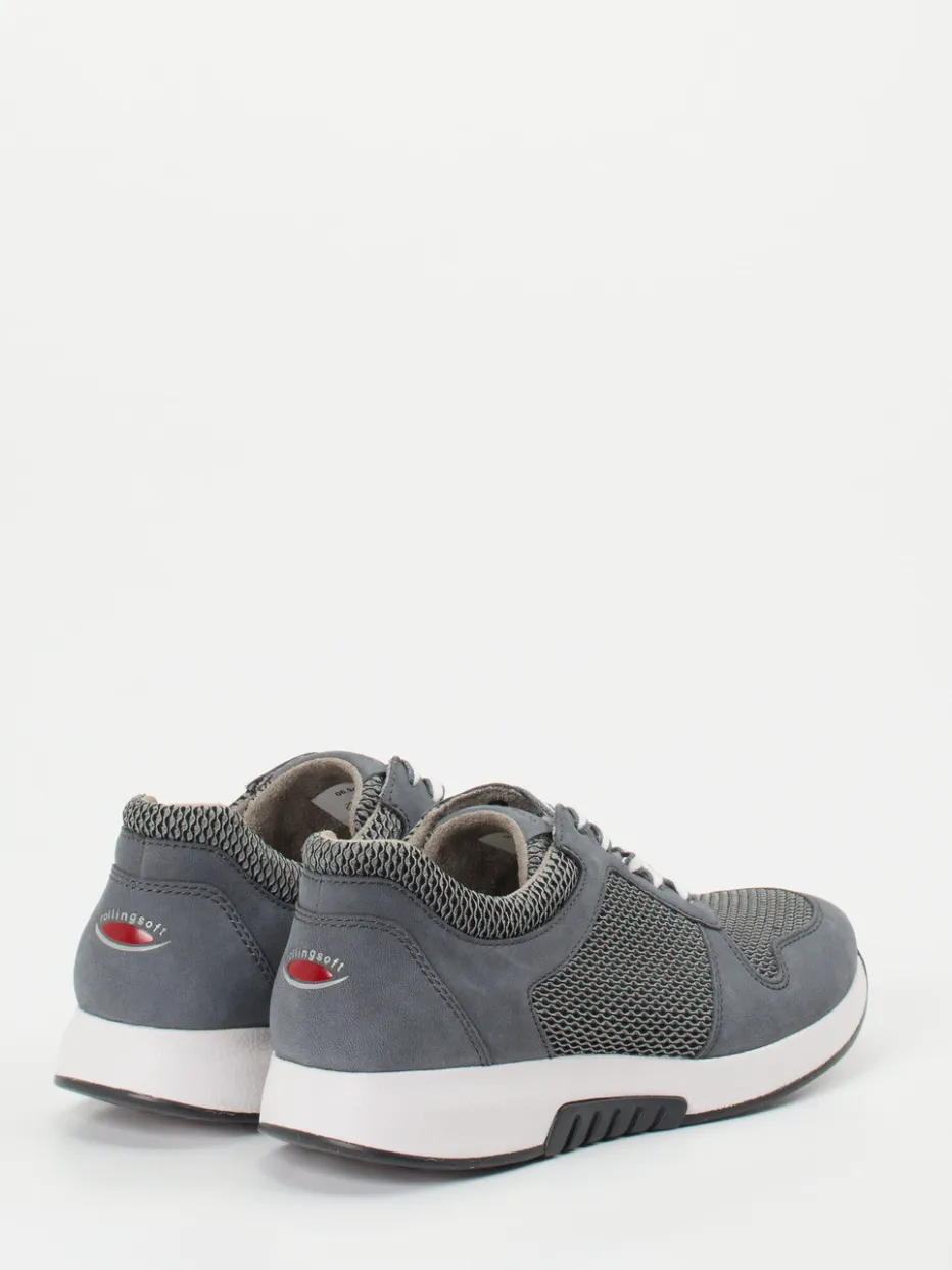 Sportiver Komfort für den Alltag.Gabor Comfort präsentiert einen bequemen Damen-Sneaker aus der Rollingsoft-Serie. Perfekt für längere Spaziergänge oder aktive Tage geeignet, überzeugt dieses Modell mit einer Kombination aus grauem Nubukleder und tonigem Mesh, samtig angeschliffen und angenehm matt. Die sportlich-abgerundete Silhouette betont den modernen Look, während weiße Schnürsenkel einen frischen Kontrast setzen. Eine flexible Gummisohle mit ergonomischer Abrollfunktion und der gepolsterte Einstieg bieten zusätzlichen Komfort. Der Sneaker harmoniert ideal mit entspannten Casual-Outfits im Athleisure-Stil. Maximale Bewegungsfreiheit mit dem Komfortanspruch von Gabor.