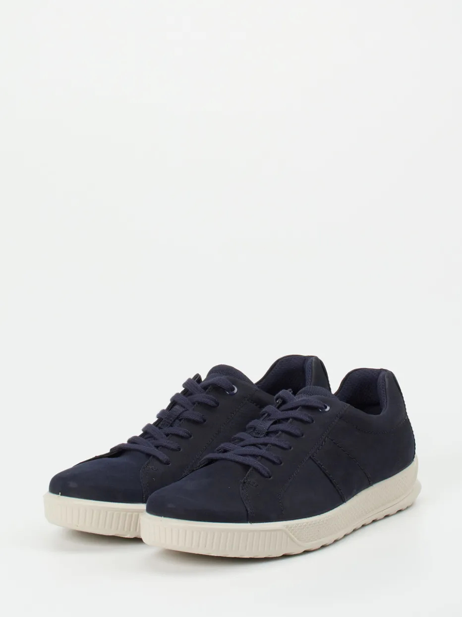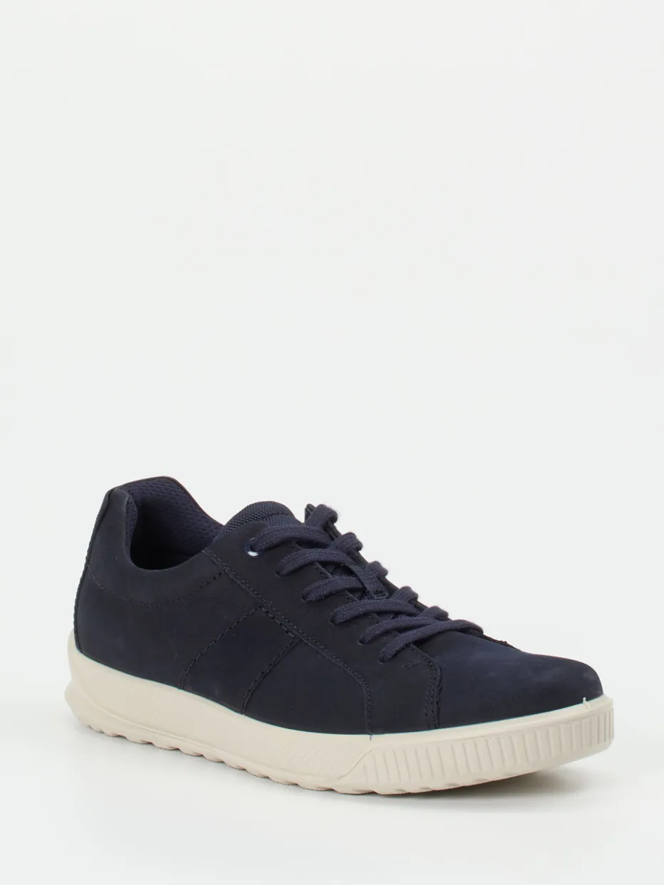 Cleanes Design für moderne Freizeitlooks.Ecco präsentiert mit diesem Sneaker einen stilvollen Begleiter für Alltag und Freizeit. Die klassisch-runde Low-Top-Silhouette aus dunkelblauem Nubukleder wirkt durch ihre matte Oberfläche angenehm zurückhaltend. Ton-in-Ton gehaltene Nähte und eine strukturierte, cremeweiße Gummisohle unterstreichen die minimalistische Linienführung. Eine gepolsterte Schaftrand-Konstruktion und das atmungsaktive Textilfutter sorgen für Komfort, während die rutschfeste Gummisohle mit griffigem Profil für Alltagstauglichkeit steht. Inspiriert von skandinavischer Zurückhaltung passt der Schuh perfekt zum Trend „Quiet Comfort“ und lässt sich mühelos zu Casual-Jeans und cleanem Rucksack kombinieren. Ecco vereint funktionale Qualität mit formbewusstem Designverständnis.