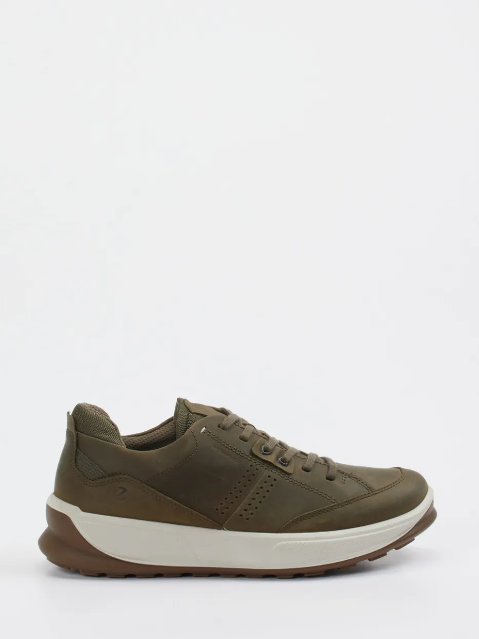 Für Alltag und leichte Abenteuer.Ecco präsentiert hier einen Herren-Sneaker mit klarer Linienführung und sportivem Anspruch. Ob Stadtbummel oder Spaziergang im Grünen – dieser Low-Top-Sneaker aus wasserabweisendem Nubukleder, samtig angeschliffen, vereint Komfort und Stil. Olivgrün als Hauptton wirkt modern und zurückhaltend, ergänzt durch tonale Ziernähte, perforierte Seitenelemente und einen gepolsterten Schaft. Das atmungsaktive Textilfutter und die breite Zwischensohle mit robuster Gummiprofilsohle stehen für funktionalen Komfort. Ideal für Casual-Looks mit Funktionsjacke oder Denim. Ein stilvoller Begleiter mit Outdoor-Flair und markentypischer Bequemlichkeit.
