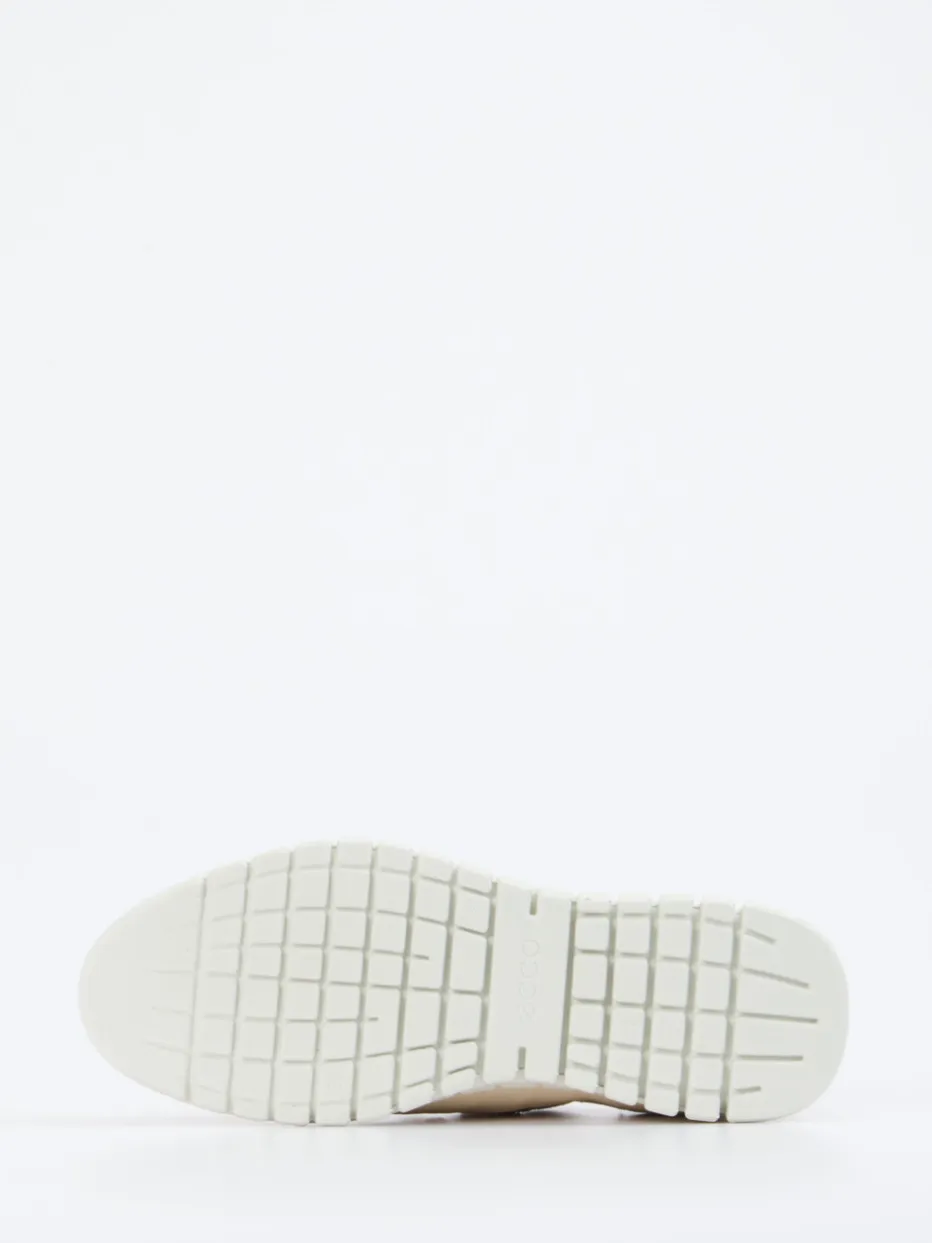Ecco präsentiert diesen Damen-Sneaker als Slip-On-Modell mit sportlich-kompakter Silhouette.