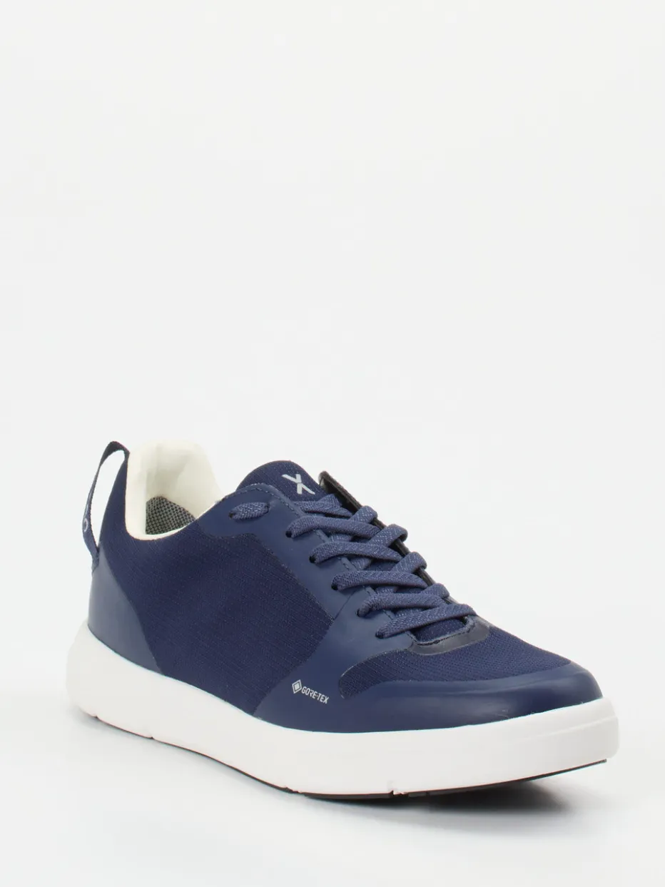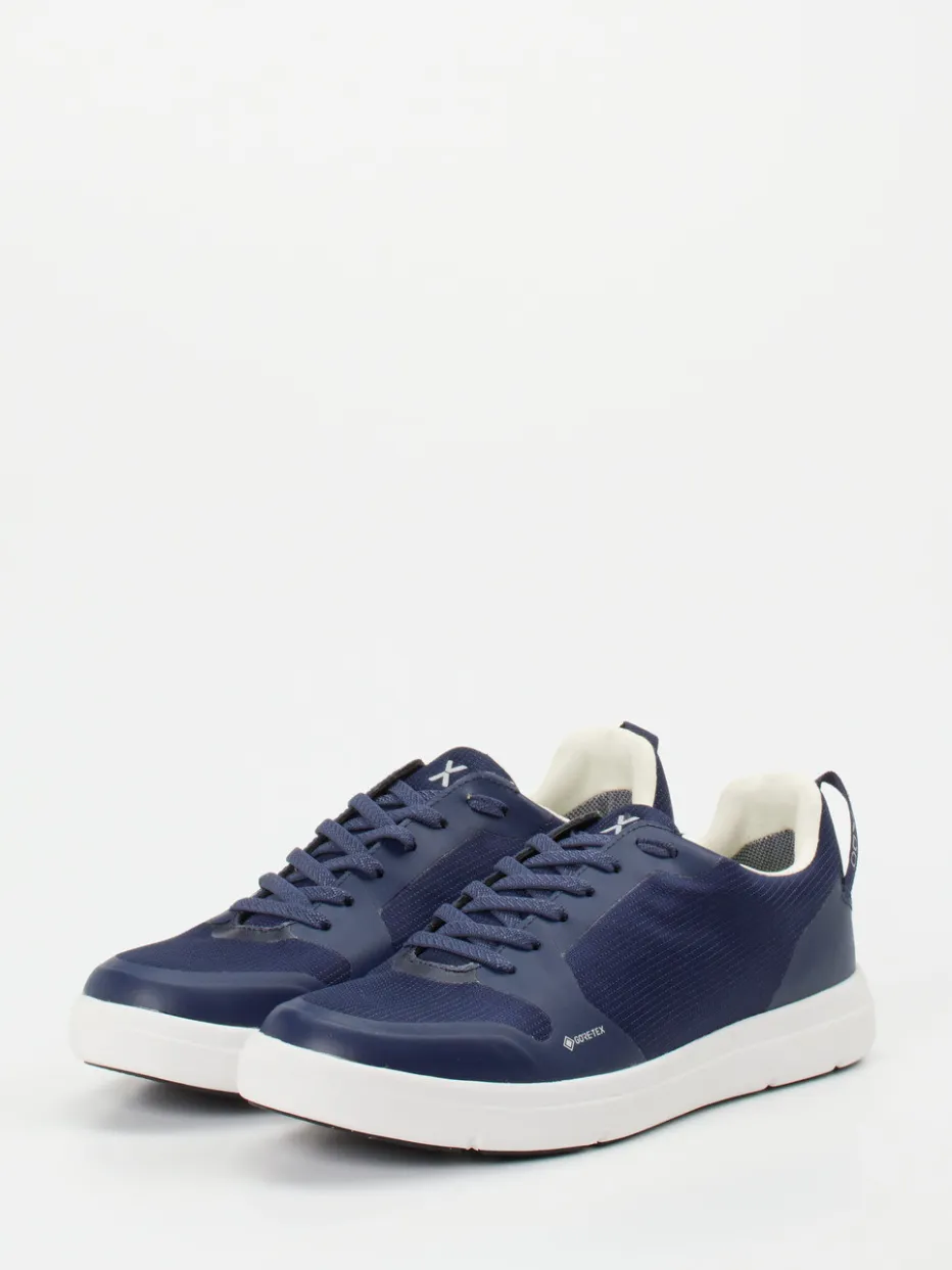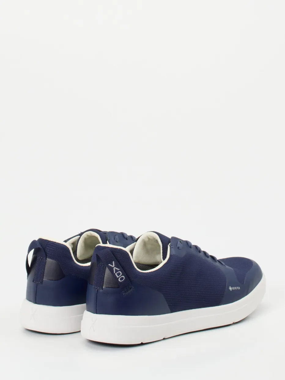 Vielseitig für Stadt und Natur.Vado vereint mit diesem Low-Top-Sneaker Funktionalität und reduziert-stilvolle Optik. Ob beim Stadtspaziergang oder bei spontanen Touren – das marineblaue Modell schützt dank GORE-TEX-Membran wirksam vor Wind und Nässe. Der Materialmix aus Textil und matt schimmerndem Synthetik fühlt sich leicht an und zeigt sich mit klassisch flacher Silhouette. Ton-in-Ton-Nähte, dezente Logos und eine profilierte Flex-Sohle mit ECO-Detail unterstreichen den urban-outdoor Charakter. Die gepolsterte Ferse erhöht den Komfort. Ein wetterfester Alltagsbegleiter mit durchdachter Funktionalität im markentypisch klaren Look.