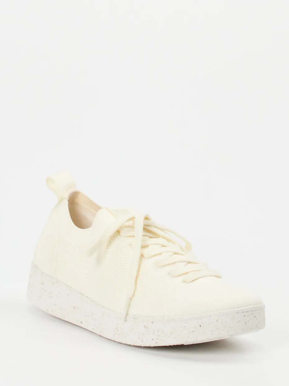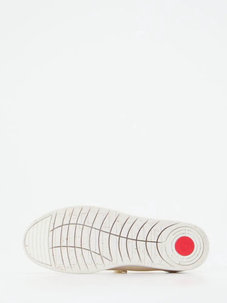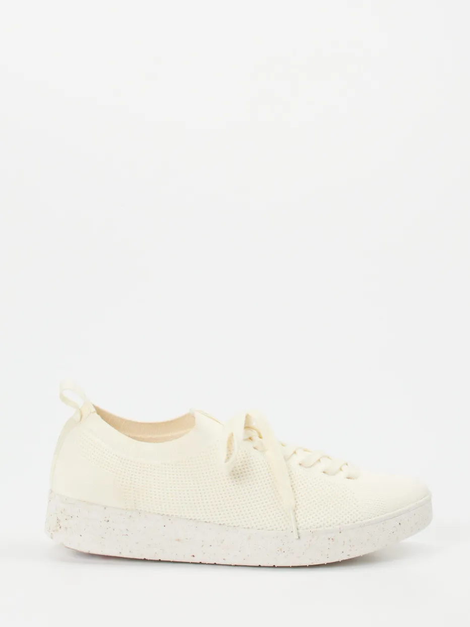 Modernes Understatement für jeden Tag.FitFlop präsentiert mit diesem Damen-Sneaker ein lässiges Modell aus softem Textilstrick. Ideal für entspannte Wege zwischen Café, Büro oder Spaziergang im Park. Das atmungsaktive Textilmaterial in Cremeweiß ist samtig matt, nahtlos verarbeitet und sitzt wie eine zweite Haut. Die recycelte Gummisohle mit gesprenkeltem Finish vereint Komfort mit Stil und sorgt für leichten Halt. Eine rückseitige Zuglasche erleichtert das Anziehen, die Schnürung bietet sicheren Sitz. Inspiriert vom „Quiet Luxury“-Trend, passt dieser Sneaker perfekt zu nachhaltigen Basics. Sichtbare Hochwertigkeit trifft auf funktionale Leichtigkeit – markentypisch FitFlop.
