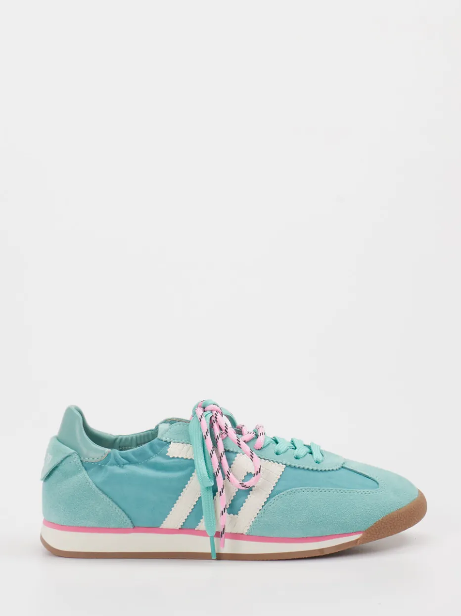 Der Retro-Sneaker von Back 70 kombiniert weiches Veloursleder mit leichten Textilpartien und setzt mit seiner frischen Farbkombination stylische Akzente im Alltag.