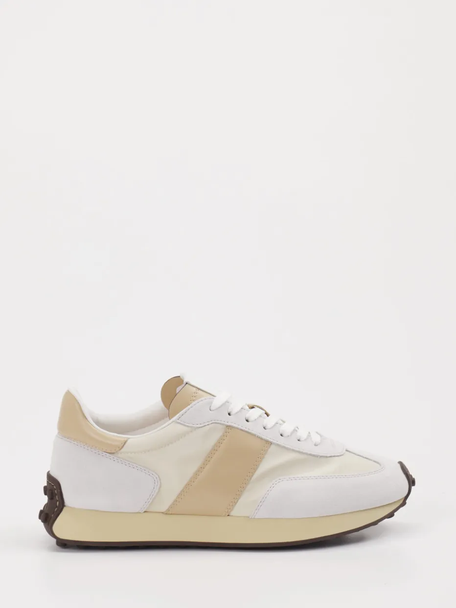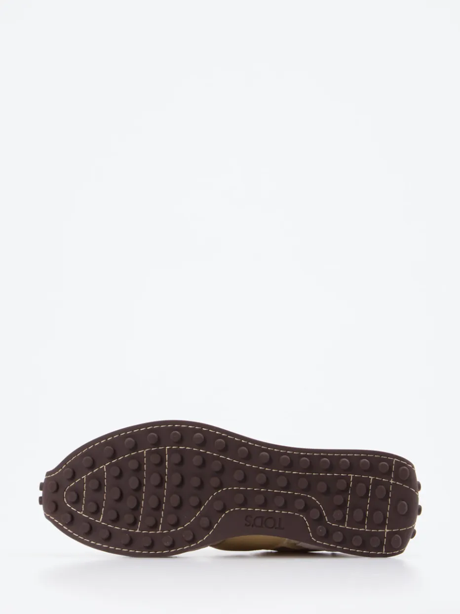 90s-inspirierter Alltags-Liebling. Tod’s interpretiert den klassischen Runner mit diesem Sneaker neu – in einer Kombination aus Velour und Textil. Ob für einen Spaziergang durch die Stadt oder entspannte Stunden im Café – das Modell überzeugt mit seiner glatten, matten Oberfläche in Offwhite sowie beigefarbenen Overlays. Die Gummisohle mit charakteristischem Noppenprofil sorgt nicht nur für guten Grip, sondern unterstreicht den Retro-Charakter. Dank flacher Silhouette und Schnürverschluss wirkt das Design zeitlos, stilvoll und vielseitig kombinierbar – etwa mit Jogpants oder Clean Denim. Ein stilbewusster Begleiter für moderne Streetwear mit luxuriösem Understatement.