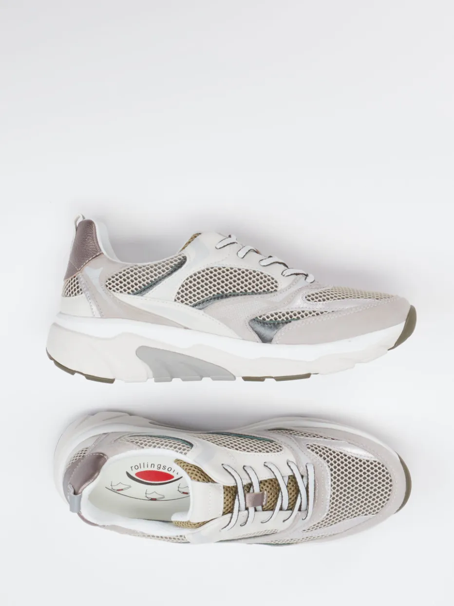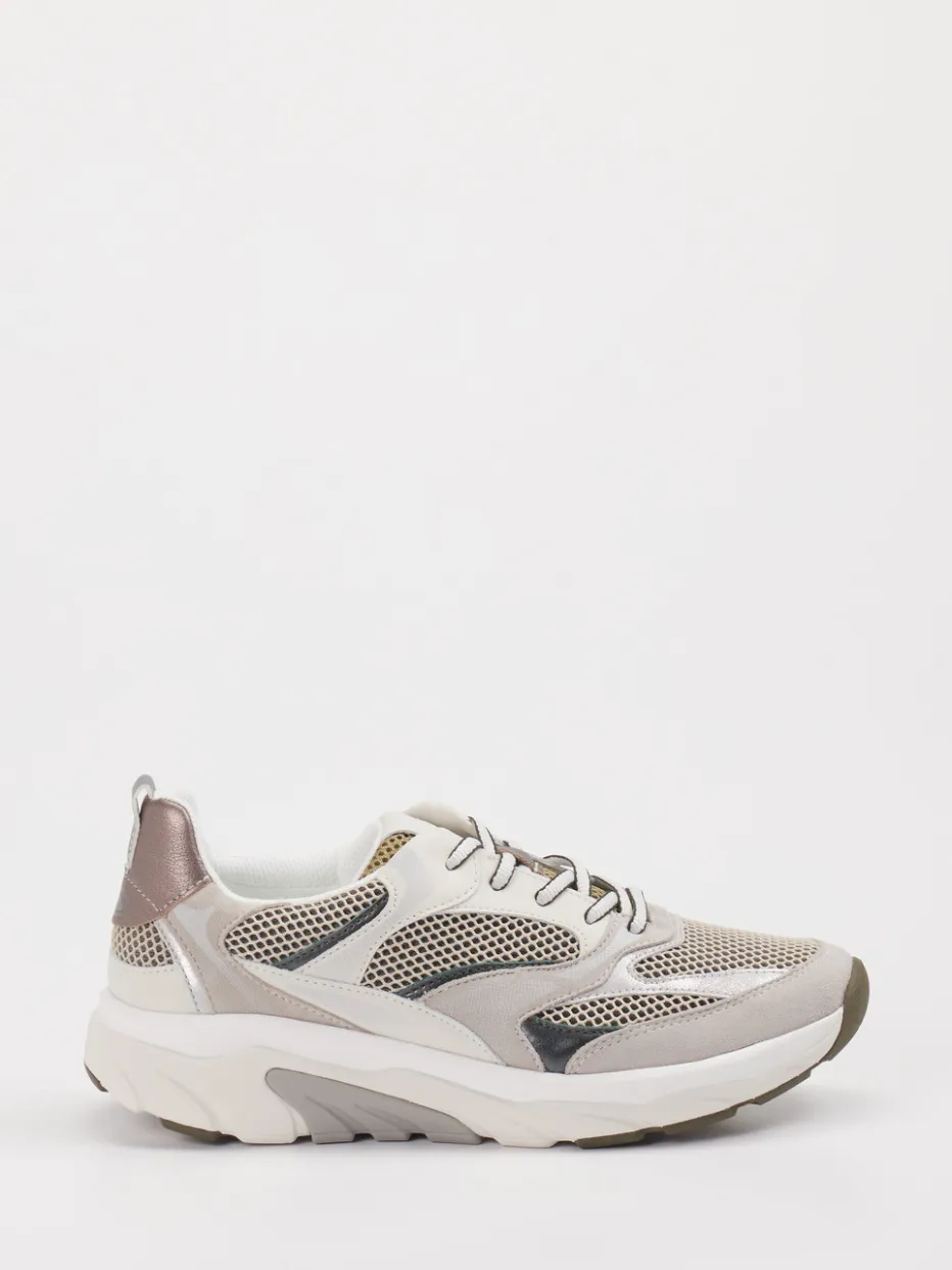 Chunky-Look trifft Mesh-Layering. Dieser Damen-Sneaker von Gabor Comfort setzt ein stilbewusstes Statement im Streetwear-Bereich. Für lange Tage in Bewegung bietet er dank der voluminösen, dämpfenden Sohle und atmungsaktivem Mesh-Gewebe optimalen Komfort. Die Kombination aus Velours und weiteren Textilanteilen schafft ein spannendes Oberflächenspiel in Beige und Weiß. Ein Metallic-Fersendetail und markante Mesh-Einsätze betonen den modischen Athleisure-Charakter. Die Schnürung und das praktische Textilfutter unterstreichen den alltagstauglichen Aufbau. Lässt sich perfekt mit Leggings oder Oversized Looks kombinieren. Ein Sneaker mit Balance aus Funktion und Design – bequem und voll im Trend.