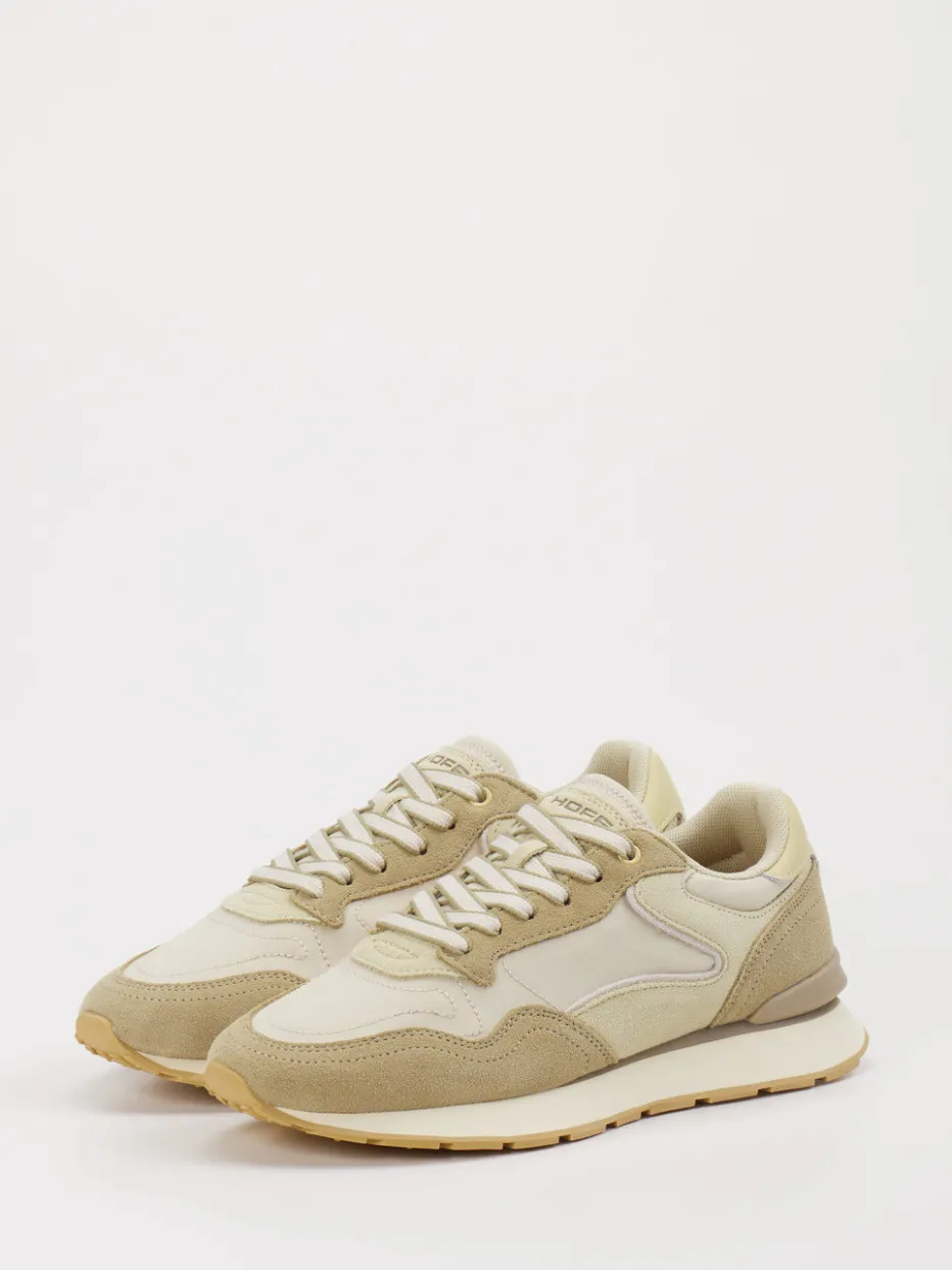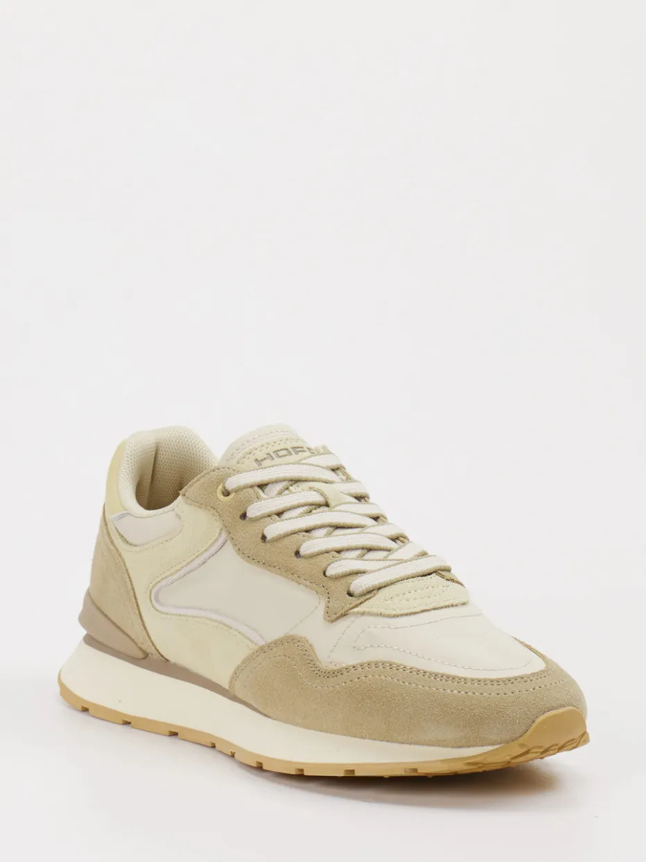 Retro-Ästhetik mit modernem Twist. THE HOFF BRAND präsentiert einen lässigen Sneaker im Retro-Runner-Stil, gefertigt für stilbewusste Freizeitmomente. Der Materialmix aus Veloursleder und atmungsaktivem Mesh sorgt für Komfort und eine abwechslungsreiche Textur. Optisch überzeugt das Modell mit seiner cremeweißen Grundfarbe, feinen Beigetönen sowie tonalen Nähten. Die klassische Low-Top-Silhouette und die markanten Logo-Prägungen auf Zunge und Ferse spiegeln die 90er-Jahre-Inspiration wider. Dank Schnürverschluss und stabiler Gummisohle eignet sich der Schuh besonders für entspannte Städtereisen oder sommerliche Streetstyle-Outfits. Harmoniert ideal mit luftigen Stoffhosen oder Jeans in neutralen Tönen. Stadttauglich, trendbewusst – THE HOFF BRAND steht für stilvolle Vielfalt im Alltag.