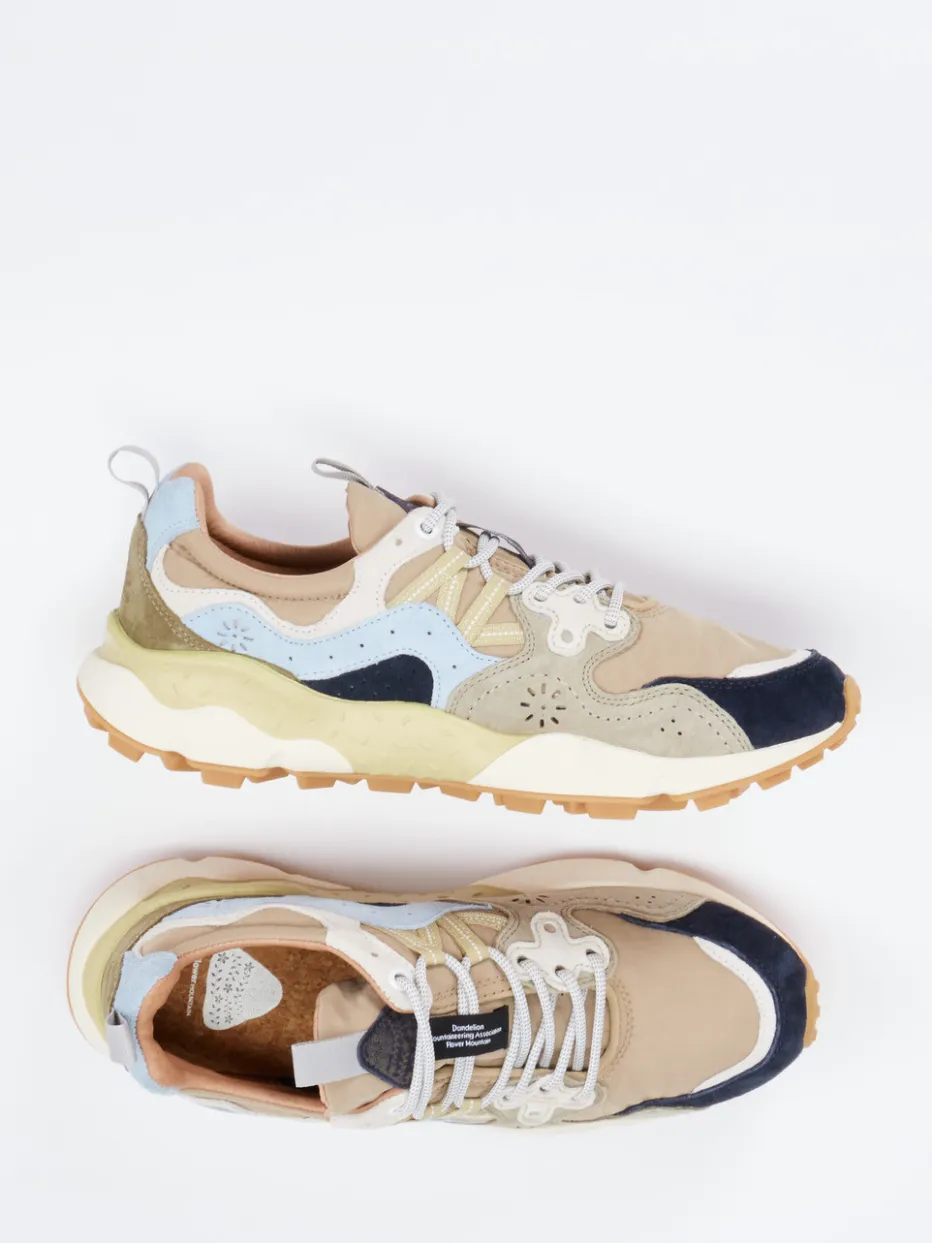 Urbane Abenteuer stilvoll meistern.Die Marke Flower Mountain präsentiert einen sportlich-outdoorinspirierten Sneaker mit besonderem Designanspruch. Ideal für Streetwear-affine Alltagssettings überzeugt das Modell mit einer Obermaterial-Kombination aus Veloursleder und Mesh, ergänzt um wellenförmige Patch-Elemente in Hellblau, Navy, Olivgrün und Beige. Das Multicolor-Design mit floralen Ausstanzungen erzeugt eine moderne Layer-Optik. Der chunky Aufbau mit profilierter Gummisohle, gepolsterter Einstieg und Zuglaschen sorgt für hohen Komfort im urbanen Gelände. Stilistisch zahlt der Schuh auf den Gorpcore-Trend ein und lässt sich ideal mit Outdoorjacke oder Utility-Rucksack kombinieren. Ein Sneaker voller Charakter mit natürlichem Komfort durch Korkfußbett und strukturierte Funktionalität.