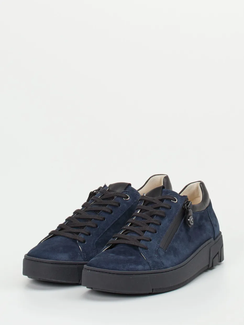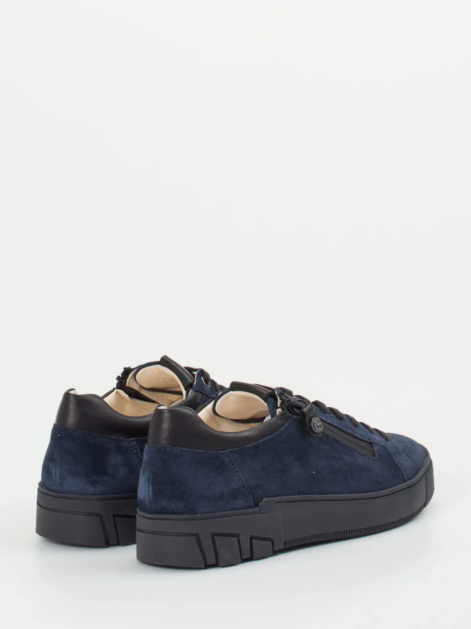 Komfort trifft urbanes Design.Der Sneaker von Ganter ist ein sportiv-eleganter Herrenschuh für Alltag und Büro. Ob auf dem Weg ins Büro oder bei urbanen Freizeitaktivitäten – dieser dunkelblaue Low-Top-Sneaker bietet dank samtig angeschliffenem Veloursleder, weichem Kalbleder am Schaftabschluss und funktionalem Reißverschluss mit Logozipper hohen Tragekomfort bei zuverlässiger Stabilität. Die klassische runde Form in Kombination mit kontrastivem Materialeinsatz greift dezente Colorblocking-Trends auf, während die profilierte Gummisohle dem Chunky-Look eine zurückhaltende Note verleiht. Ein stilbewusster Begleiter mit kompromissloser Bequemlichkeit im Ganter-typischen Komfortfokus.