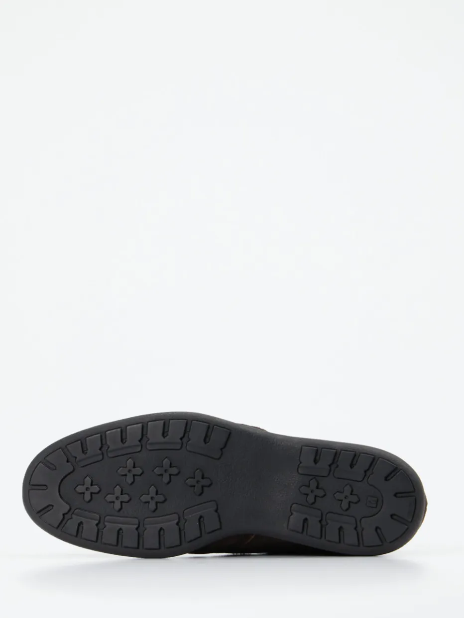 Feinsamtiges, dunkelbraunes Veloursleder verleiht dem Sneaker eine matte, edle Oberfläche. Cognacfarbene Kontrastpaspelierungen und tonige Ziernähte unterstreichen das schlichte Design mit klassisch abgerundeter Silhouette. Die stabile Gummisohle in Schwarz sorgt für einen sicheren Auftritt und harmoniert mit der dezenten Retro Running-Note. Innen überzeugt das Modell mit Kalblederfutter und gepolsterter Komfortsohle – angenehm bei längeren Tragezeiten im Alltag oder Büro. Besonders gut kombinierbar mit Naturtönen und klassischen Casual Pieces.