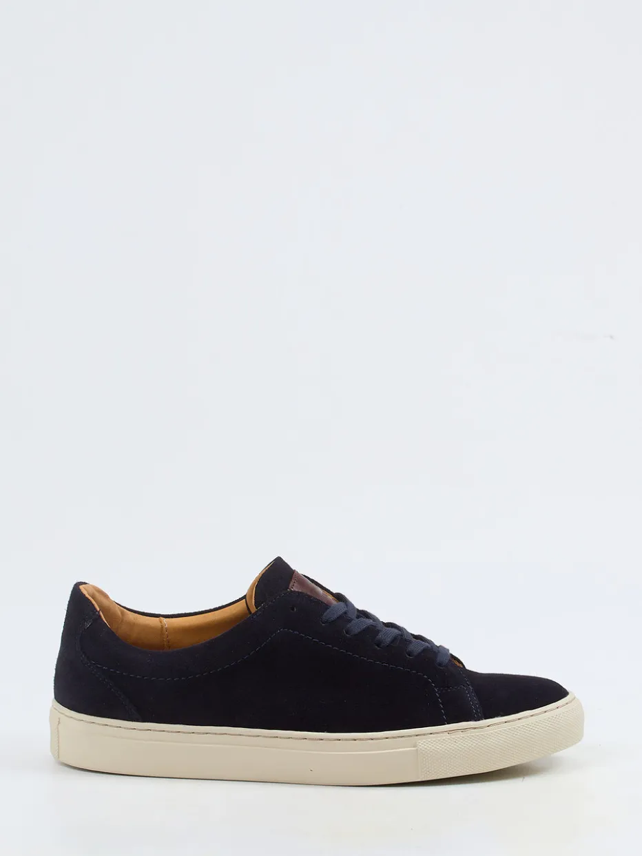 Aus dem Hause Ludwig Reiter kommt dieser schlichte Sneaker. Im Retro-Stil ist der Sportschuh aus weichem, dunkelblauem Veloursleder gefertigt. Typisch zeigt sich das besonders weiche, cognacfarbene Innenfutter. Unverkennbar präsentiert sich das Markenlogo als kleiner, brauner Lederpatch auf der Zunge. Die Innensohle ist angenehm gepolstert, die cremefarbene Gummisohle bietet optimalen Halt und Alltagstauglichkeit.