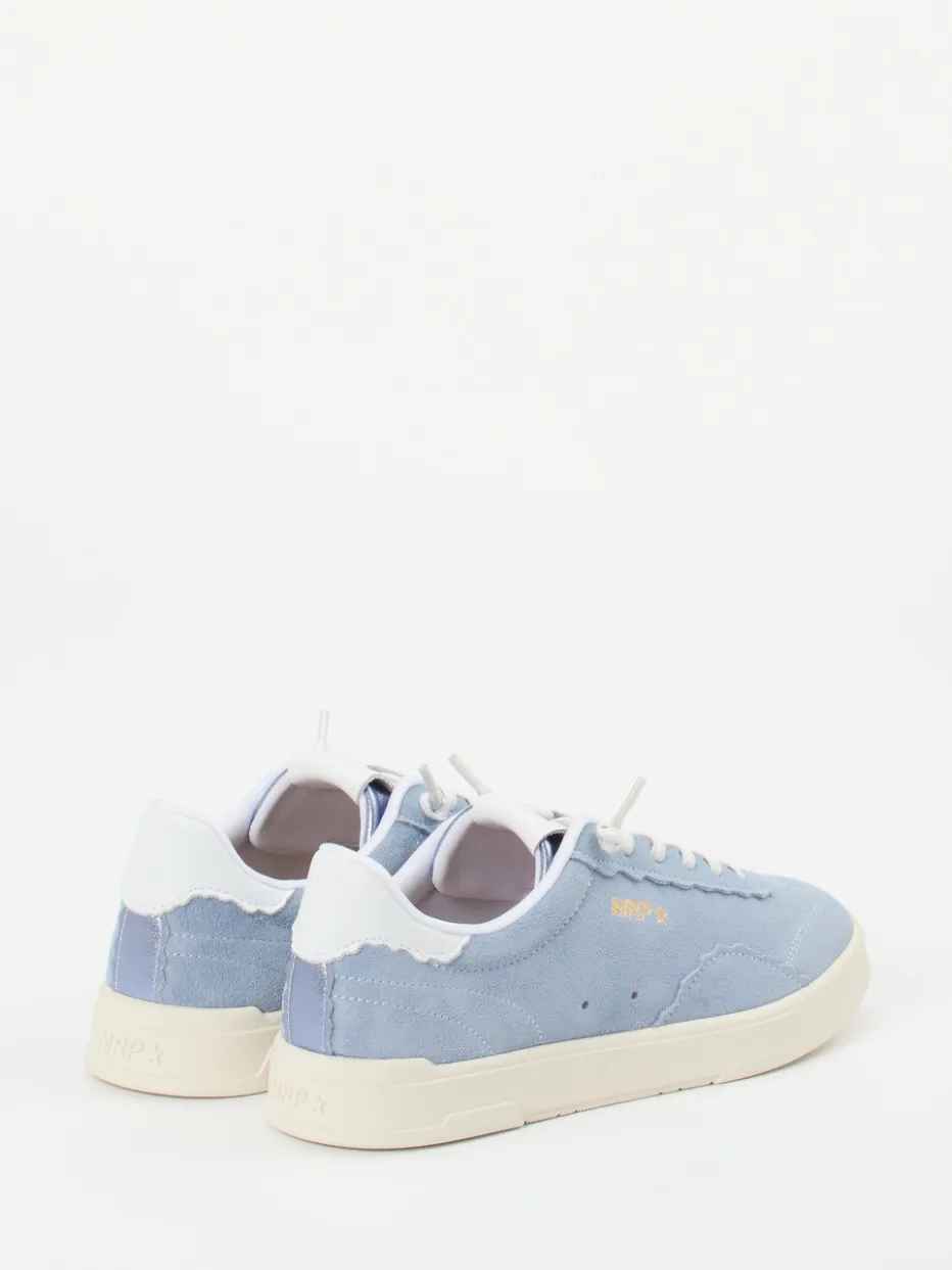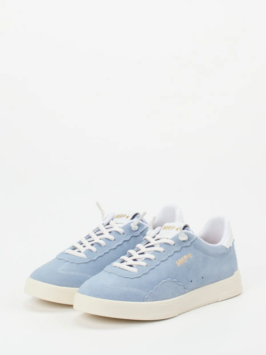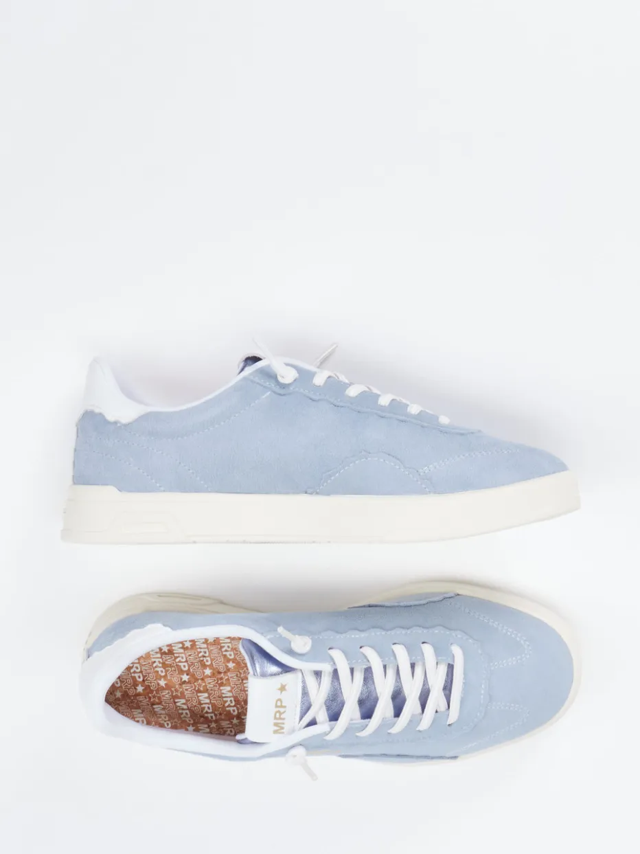 Pastell trifft Retro-Court.Der Sneaker von MRP begeistert als stilvoller Low-Top mit sportlich-reduzierter Silhouette. Für Alltag, Urlaub oder Wochenend-Outfits bietet das Modell einen komfortablen Auftritt. Das samtig angeschliffene Veloursleder in Hellblau harmoniert mit weißem Fersenbesatz und cremefarbener Gummisohle. Goldfarbener Logo-Print und Zickzack-Ziernähte setzen dezente Retro-Highlights. Ein feines Textilfutter sowie eine Einlegesohlenfreundlichkeit sorgen für zusätzlichen Tragekomfort. Inspiriert von Streetwear und Retro-Court-Sneakern der SS25-Saison. Für pastellfarbene Hoodie-Looks oder lässige Chinos gemacht – mit Leichtigkeit und Stil von MRP.