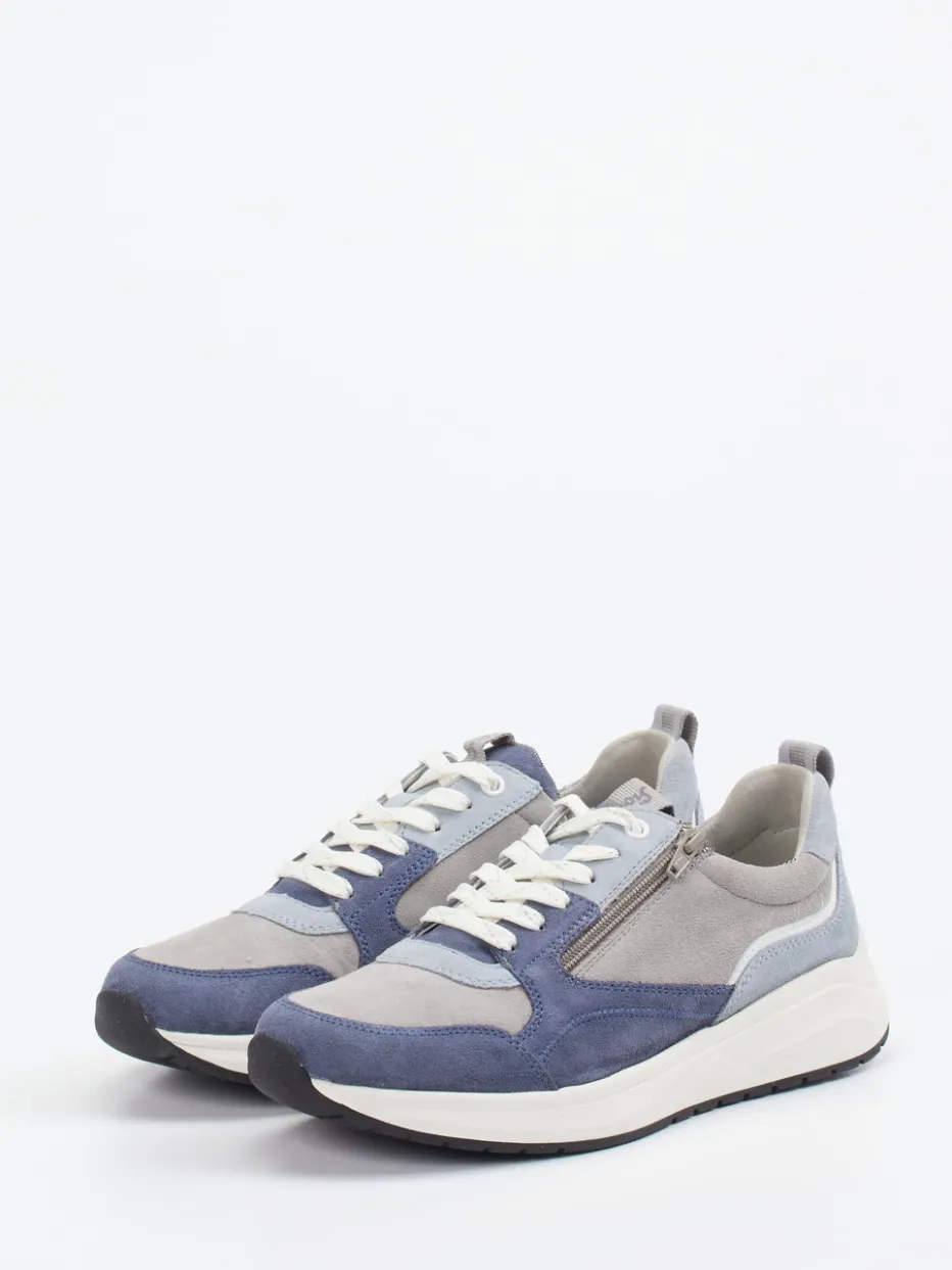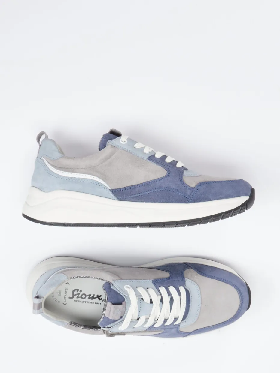 Eleganz im Alltag neu gedacht.Der Sneaker von Sioux zählt zur bequemen Freizeitmode und vereint Minimalismus mit praktischer Raffinesse. Für entspannte Tage und stilsichere Auftritte: Das Modell besteht aus feinem Veloursleder mit samtig-matter Oberfläche und ist in dezenten Graublau-Nuancen gehalten. Die Kombination aus klassisch-sportlicher Silhouette, Schnürung und seitlichem Metallreißverschluss sorgt für ein modernes, komfortorientiertes Design. Eine profilierte Gummisohle mit Dämpfung bietet zuverlässigen Halt im Alltag. Der vielseitige Stil passt hervorragend zu Jeans oder entspannten Chino-Looks. Mit seinem zeitlosen Farbspiel und der durchdachten Funktionalität steht dieser Sneaker für modernen Komfort à la Sioux.