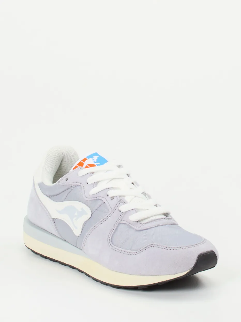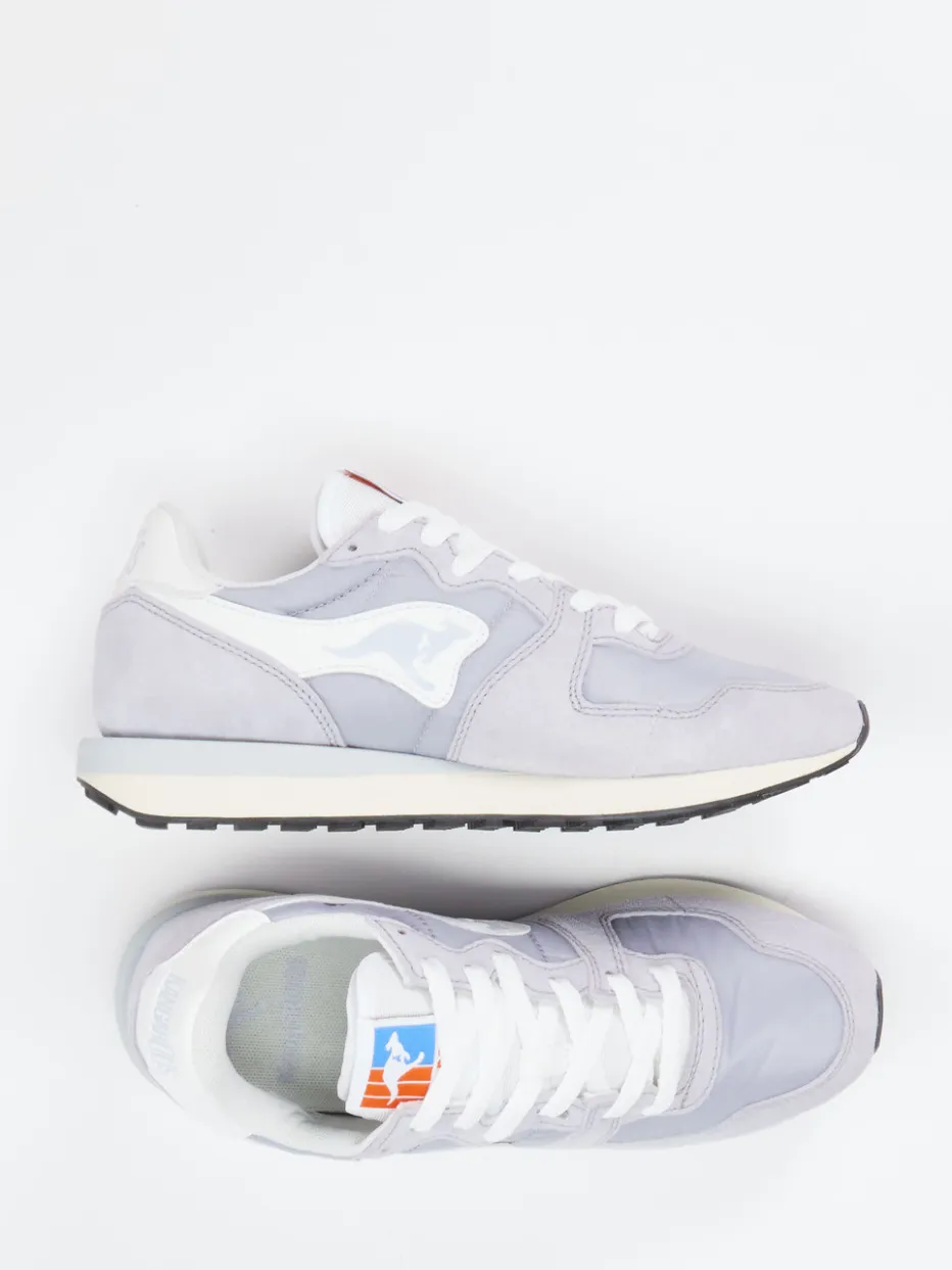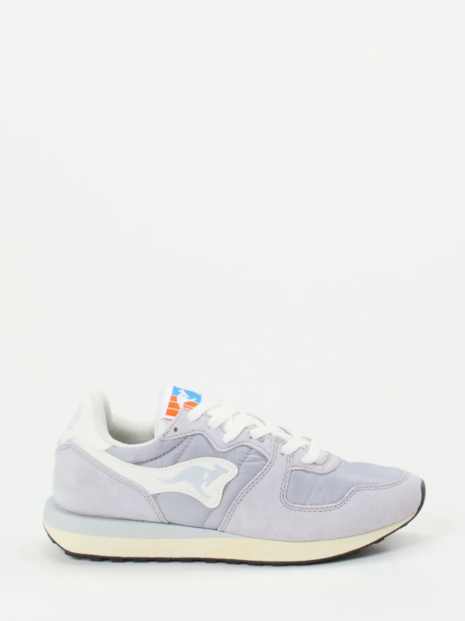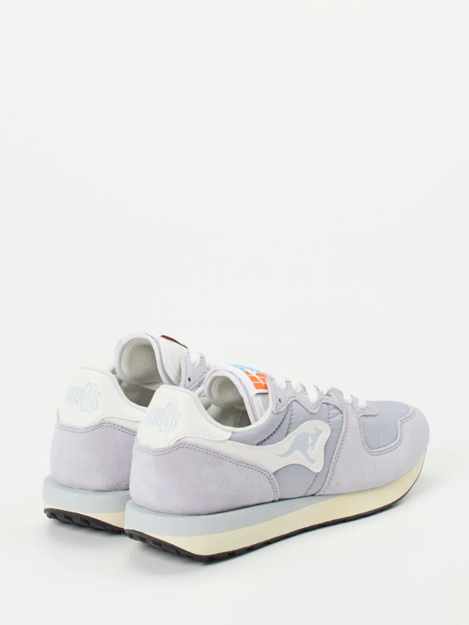 Vintage-Flair trifft Pastellfarbtrend.Kangaroos interpretiert den klassischen Runner neu: Dieser Sneaker punktet mit seinem Retro-Charme und alltagstauglichem Komfort. Ob beim Stadtbummel oder auf dem Weg zum Café – das Modell verbindet nostalgische Stilreferenzen mit modernen Materialien. Veloursleder in samtig-matter Optik trifft auf atmungsaktive Mesh-Details, kombiniert mit Akzenten aus Nylon. Die Gummisohle im Wabenprofil bietet zuverlässigen Grip, während die hellfliedrige Farbgebung dezente Frische ins Outfit bringt. Tonale Nähte, seitliches Markenlogo und gepolsterter Schaft runden das Design ab. Perfekt zu Jogpants oder Windbreaker für einen trendorientierten Casual-Look. Ein modischer Sneaker mit markeneigener Authentizität und entspannter Coolness.